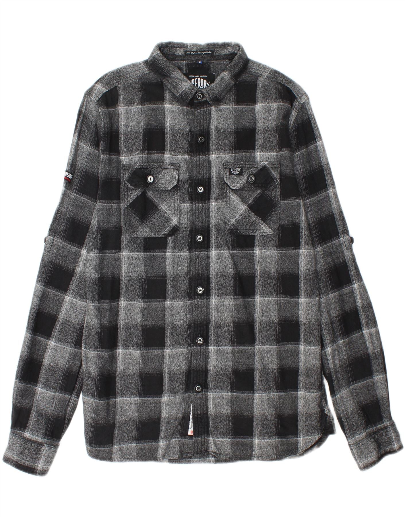 SUPERDRY Мужская фланелевая рубашка XL серого цвета в клетку, хлопок