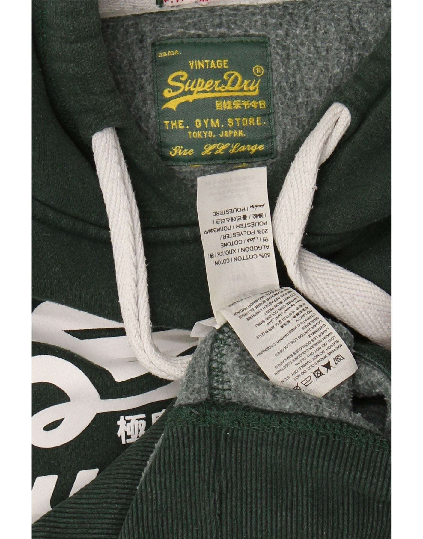 SUPERDRY Mens Graphic Hoodie Jumper 2XL Green Cotton