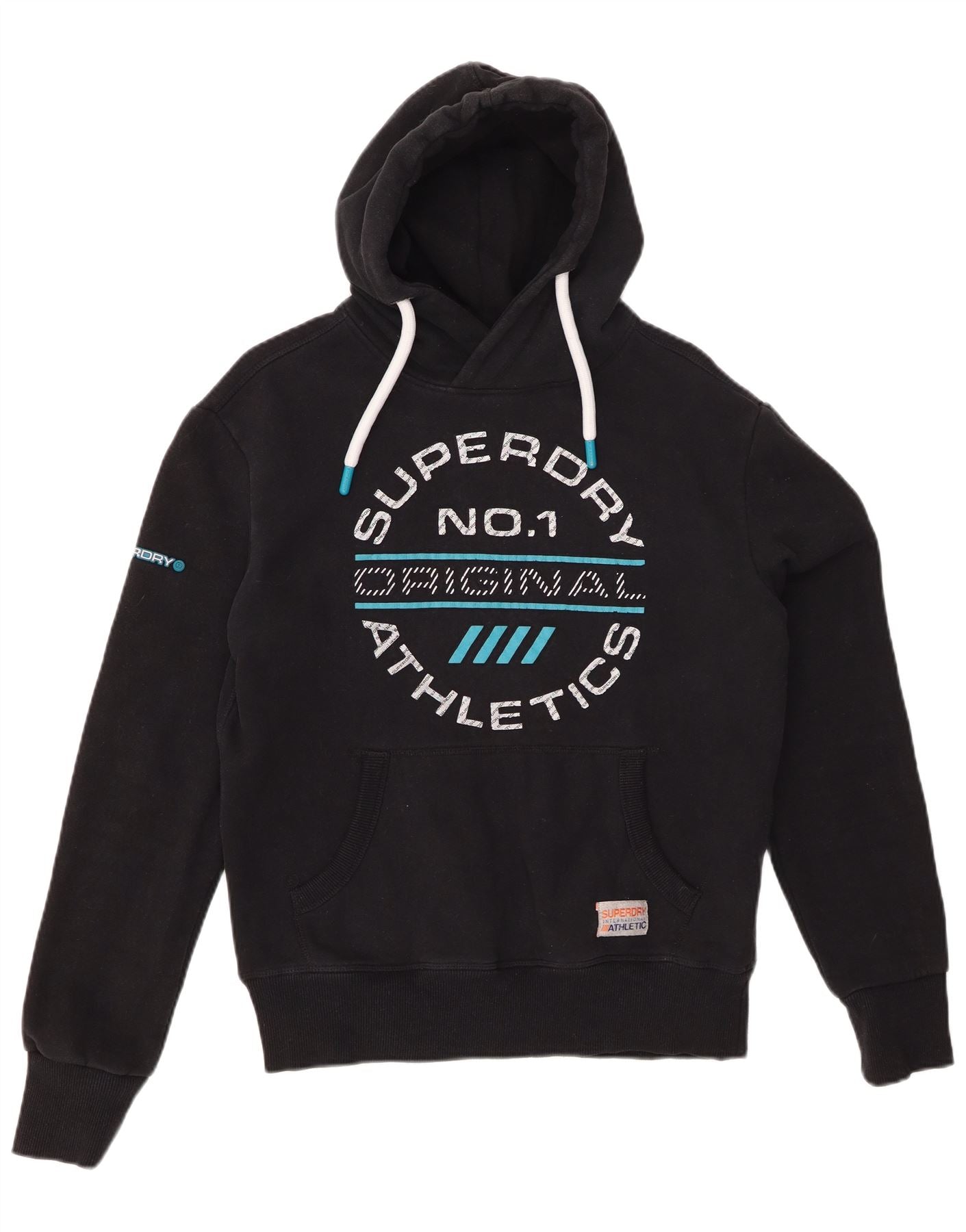 SUPERDRY Мужской джемпер с капюшоном с рисунком, маленький черный, хлопковый