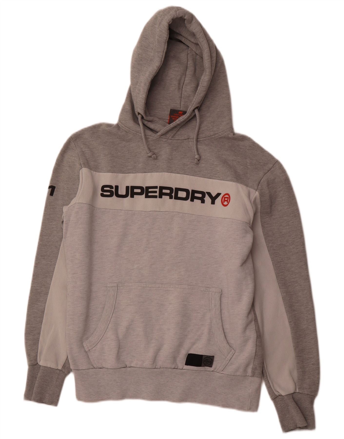 SUPERDRY Мужской джемпер с капюшоном с рисунком, XL, серый, хлопок с цветными блоками
