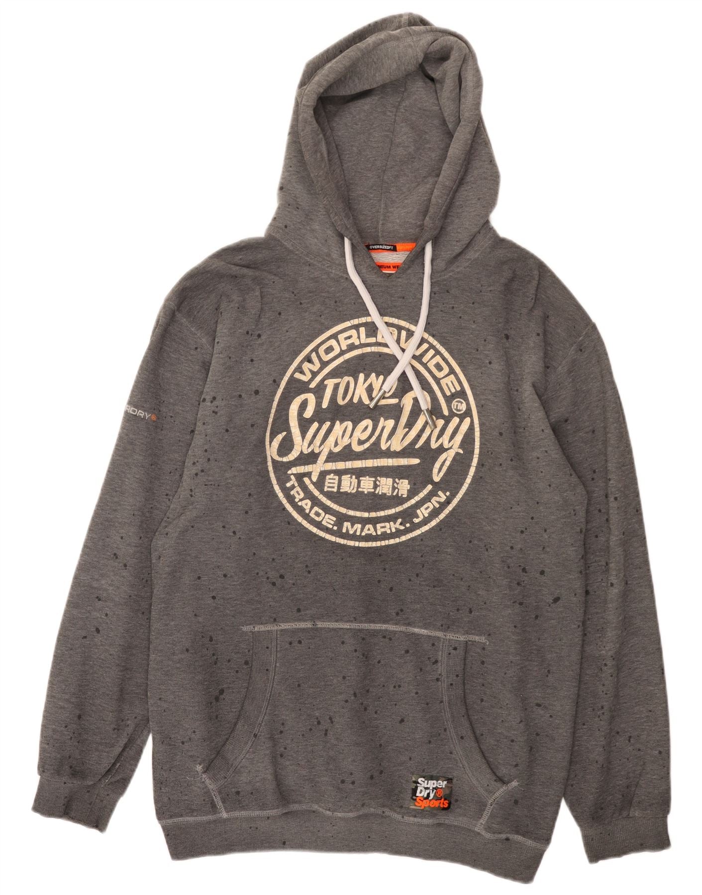 SUPERDRY Мужской джемпер с капюшоном с рисунком XL, хлопок, серый в пятнах