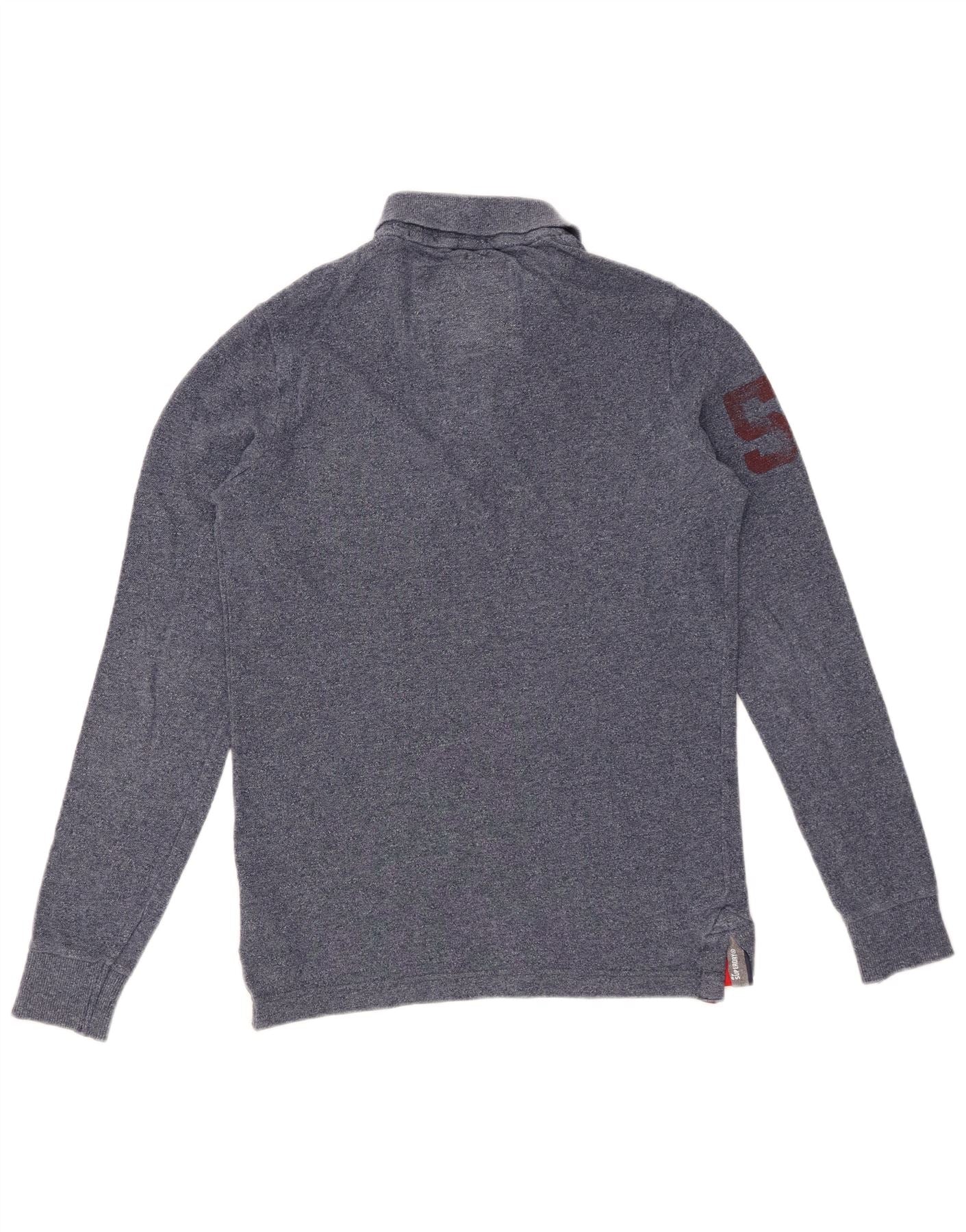 SUPERDRY Мужская рубашка поло с длинным рукавом с графическим рисунком, маленькая, темно-синяя, хлопковая