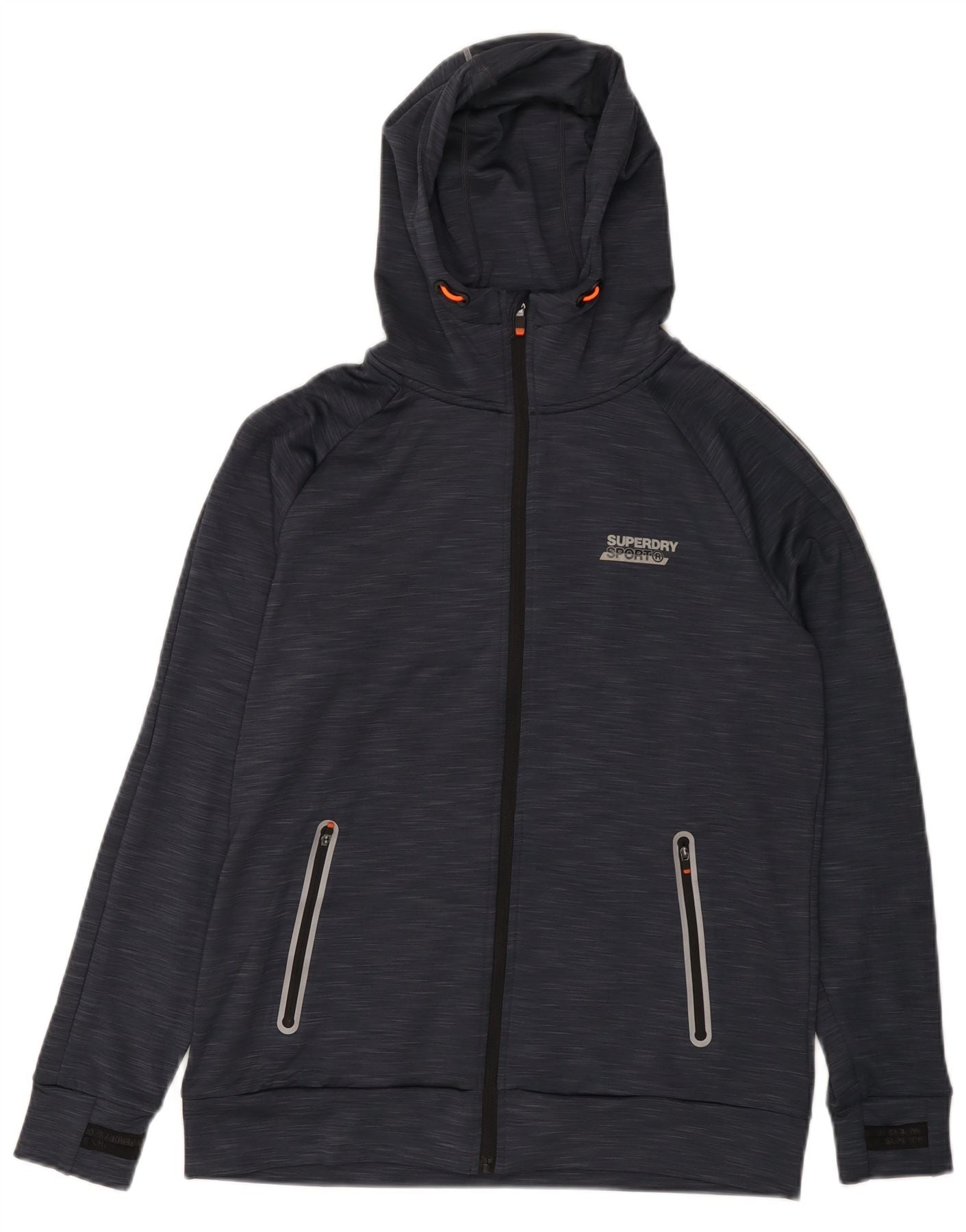 SUPERDRY Мужской свитер с капюшоном на молнии с графическим рисунком, большой темно-синий, полиэстер с крапинками