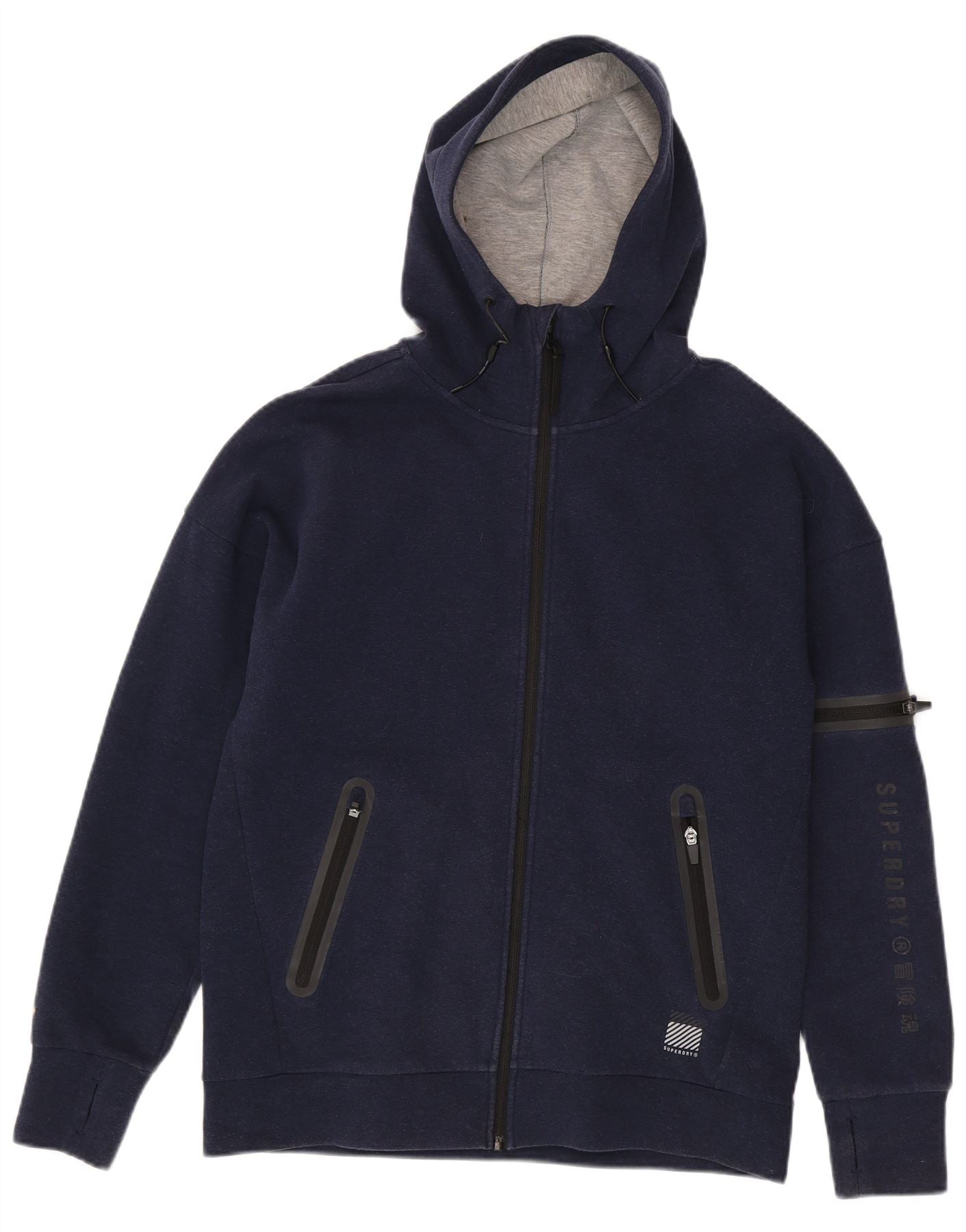 SUPERDRY Мужской свитер с капюшоном и молнией с графическим рисунком, средний темно-синий, хлопок
