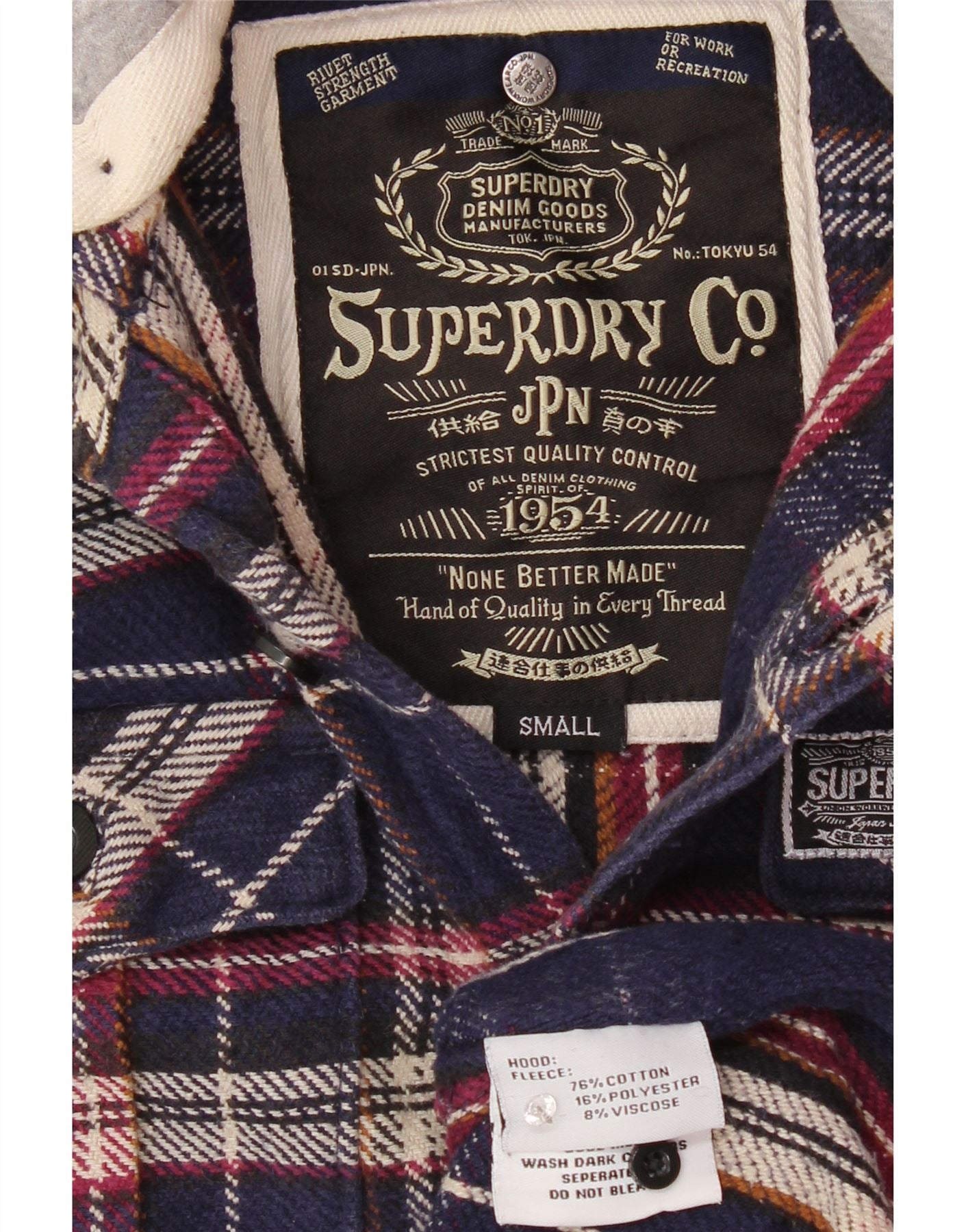SUPERDRY Мужская фланелевая рубашка с капюшоном, маленькая темно-синяя клетчатая рубашка, хлопок