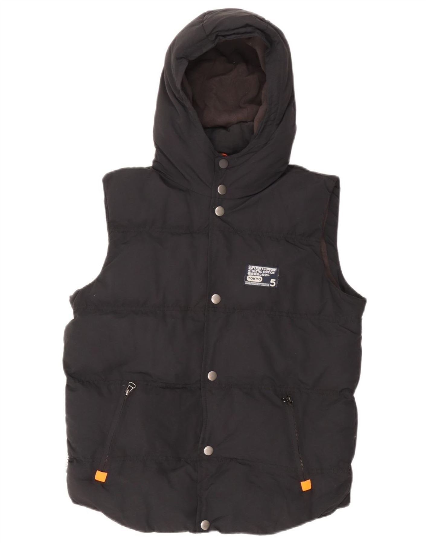 Мужской утепленный жилет с капюшоном SUPERDRY UK 38, средний черный нейлон