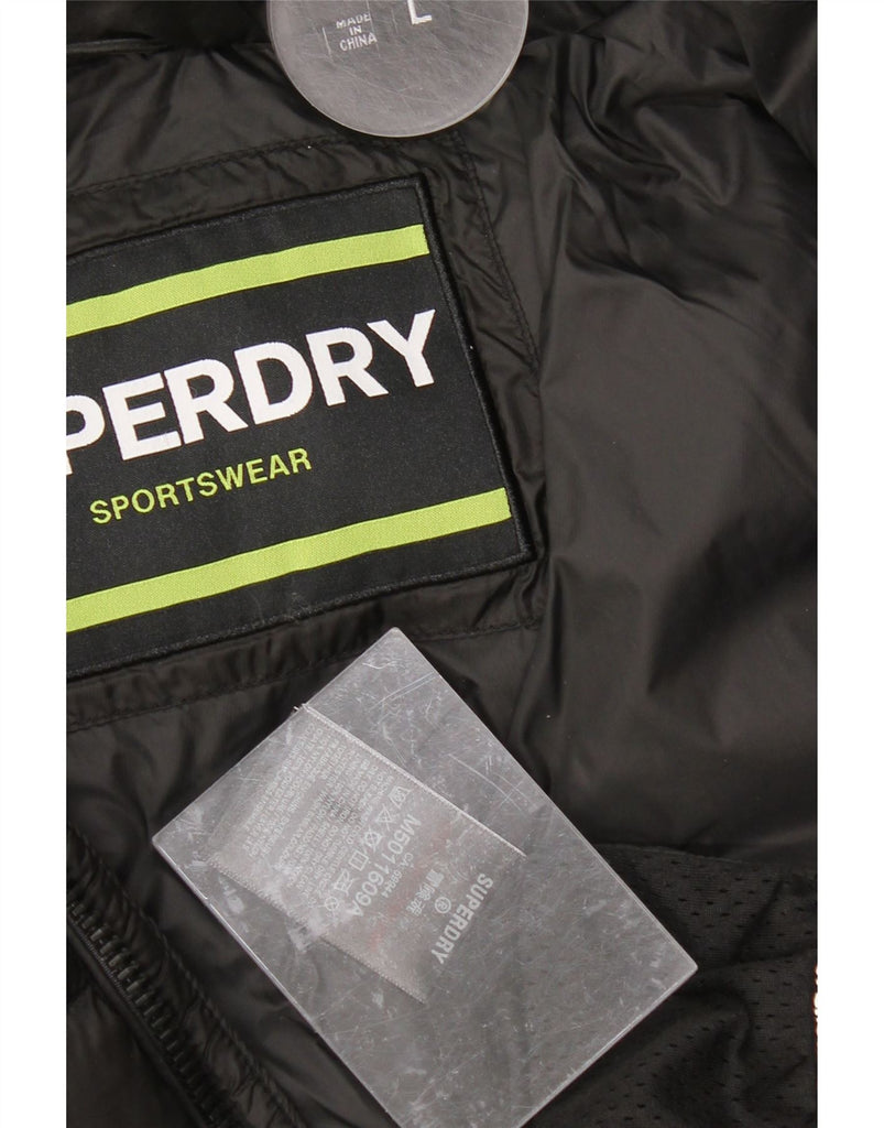 SUPERDRY Mens Hooded Padded Jacket UK 40 Large Black Nylon