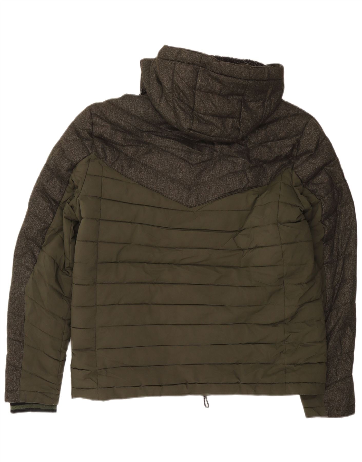 SUPERDRY Мужская утепленная куртка с капюшоном UK 42 XL Хаки Полиэстер с цветными блоками