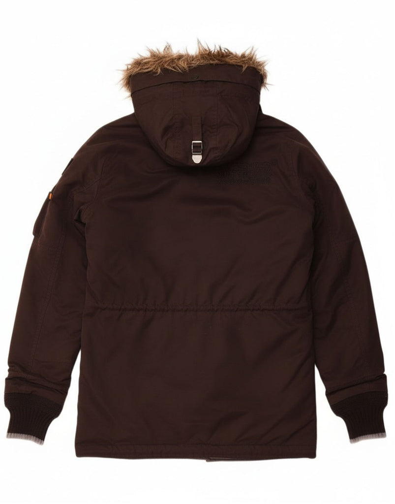 SUPERDRY Mens Hooded Parka Jacket UK 36 Small Black Polyester