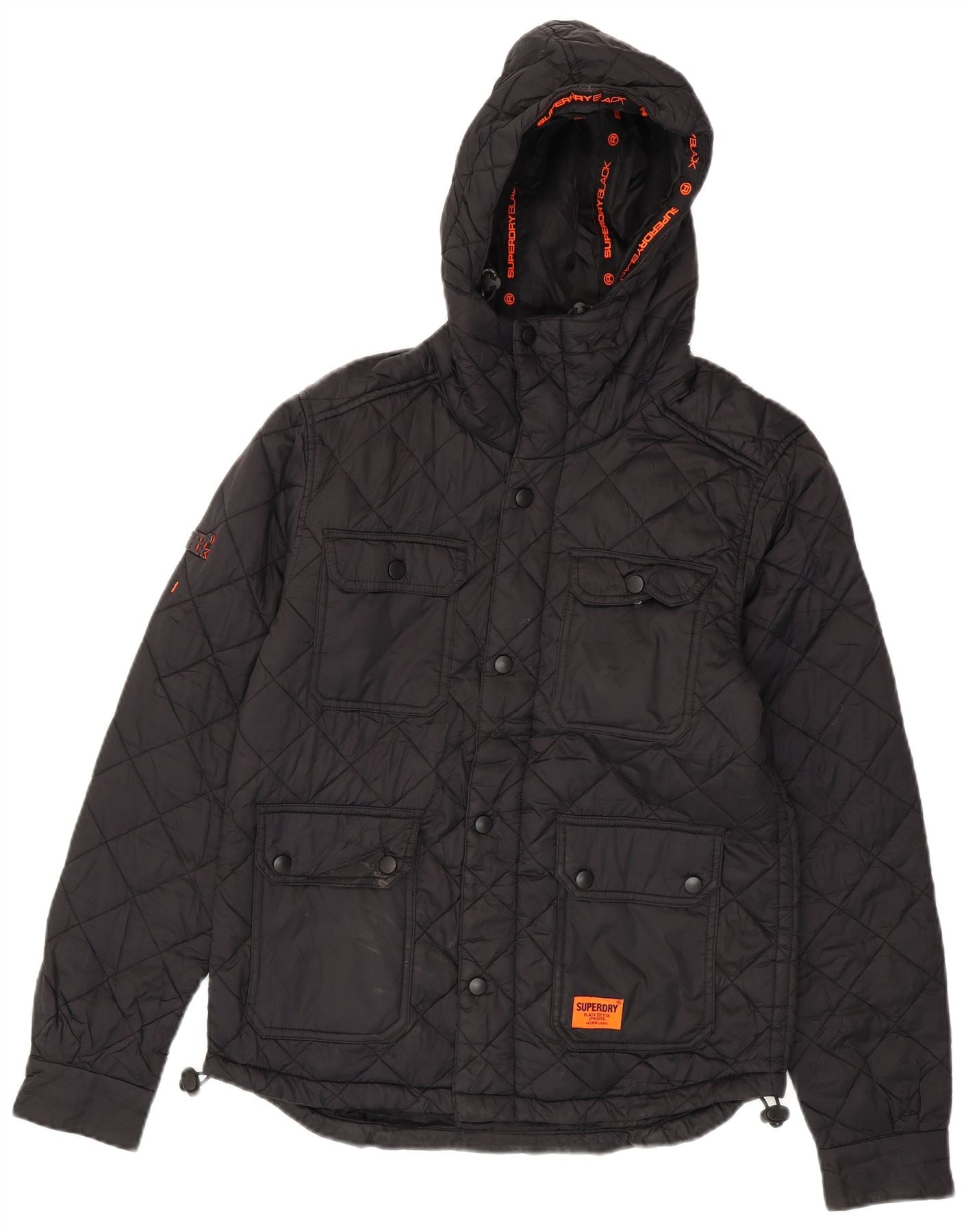 SUPERDRY Мужская стеганая куртка с капюшоном UK 36, маленькая, черный нейлон