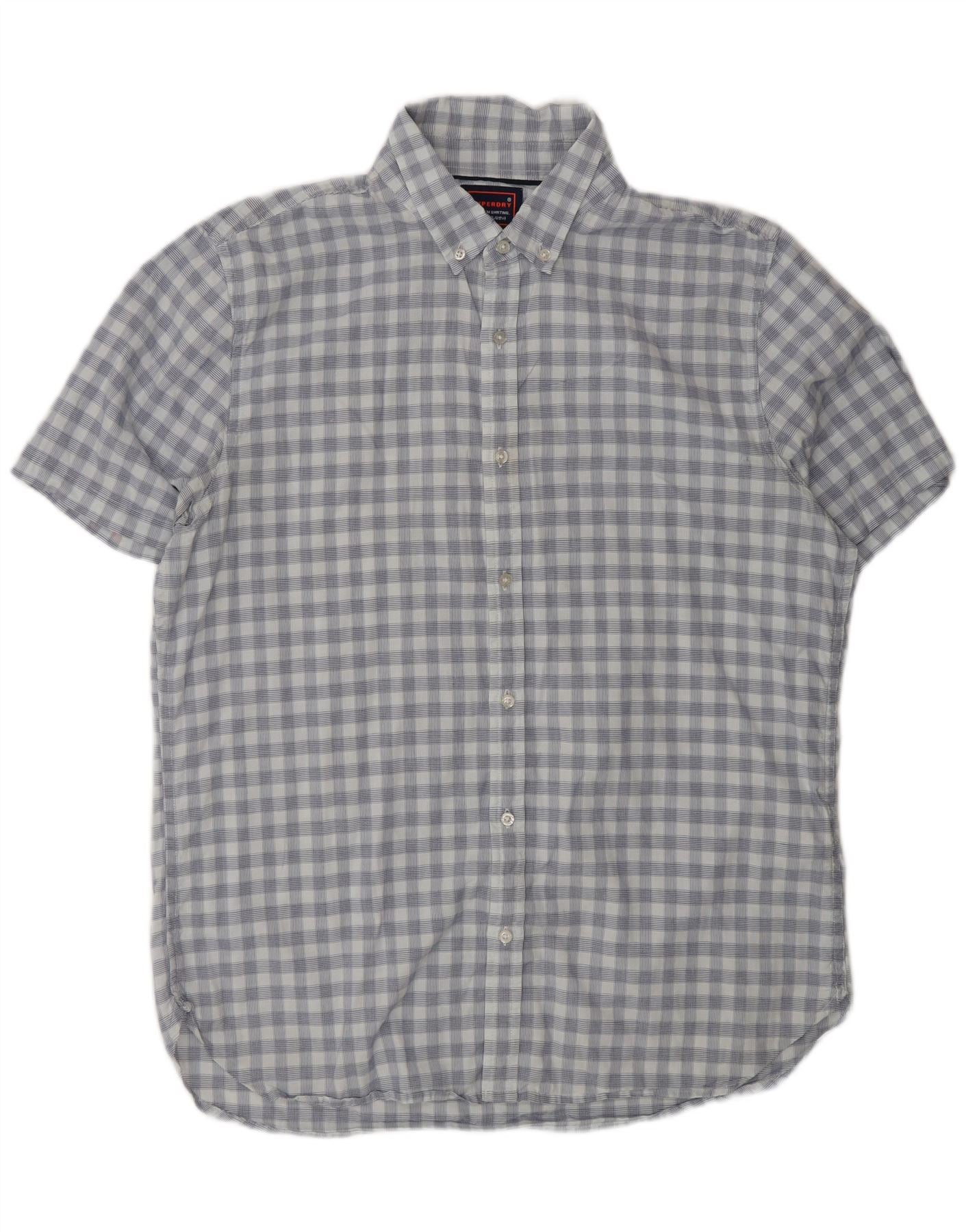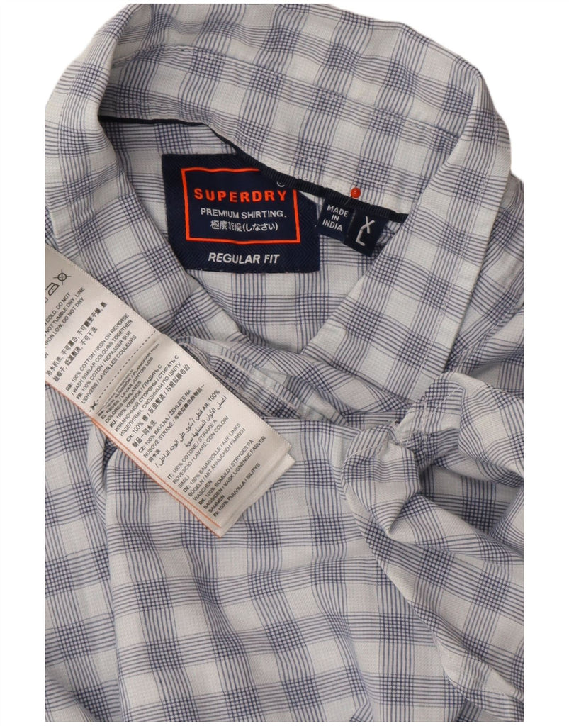 SUPERDRY Мужская рубашка обычного кроя с коротким рукавом XL, синяя клетка, хлопок