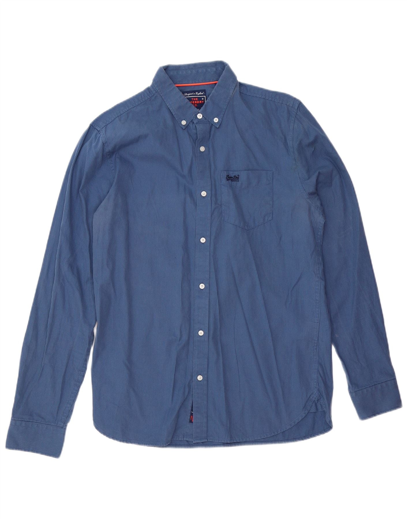 SUPERDRY Мужская рубашка из хлопка синего цвета с узором «гусиные лапки»