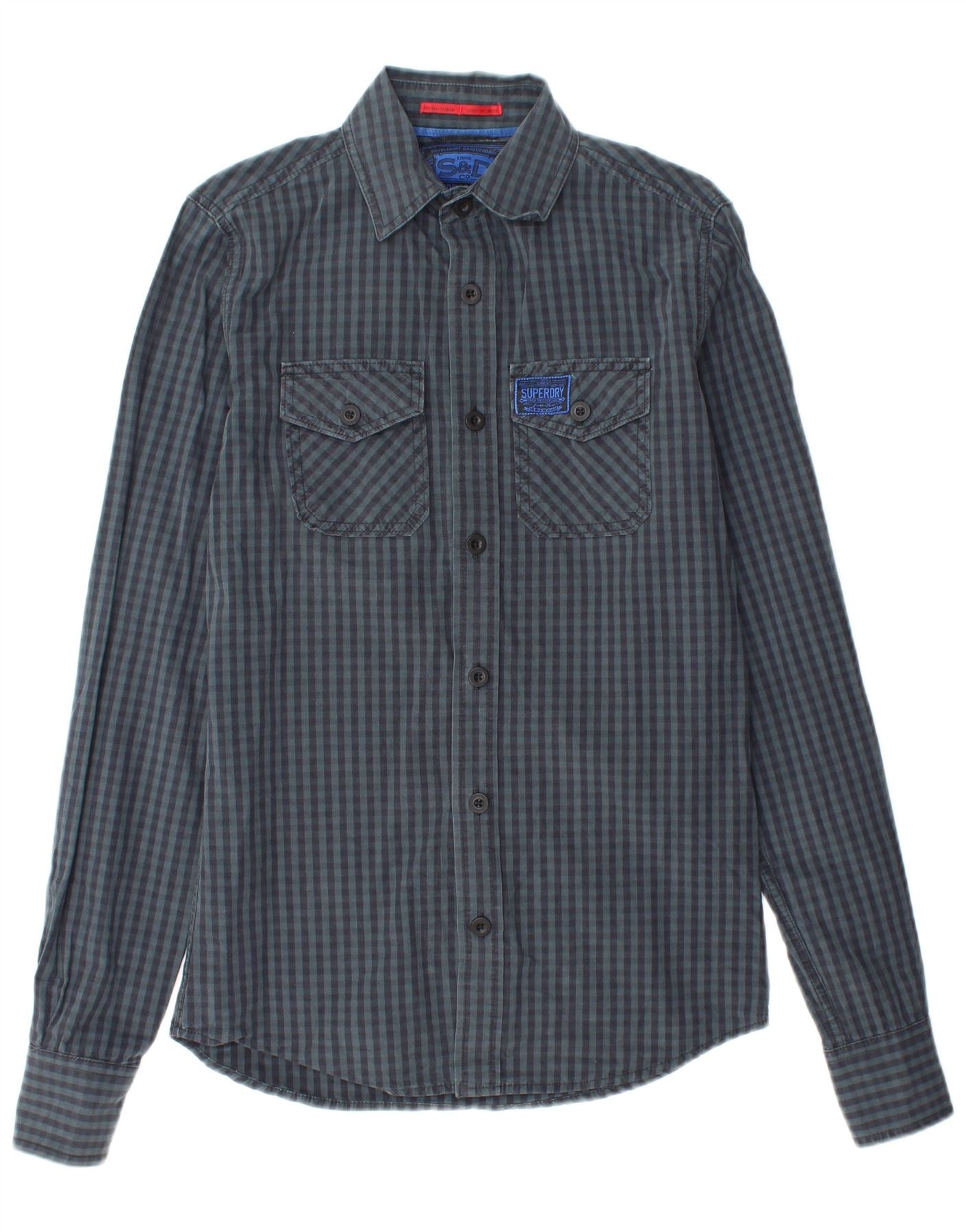SUPERDRY Мужская рубашка маленького размера, темно-синяя, в мелкую клетку, хлопок