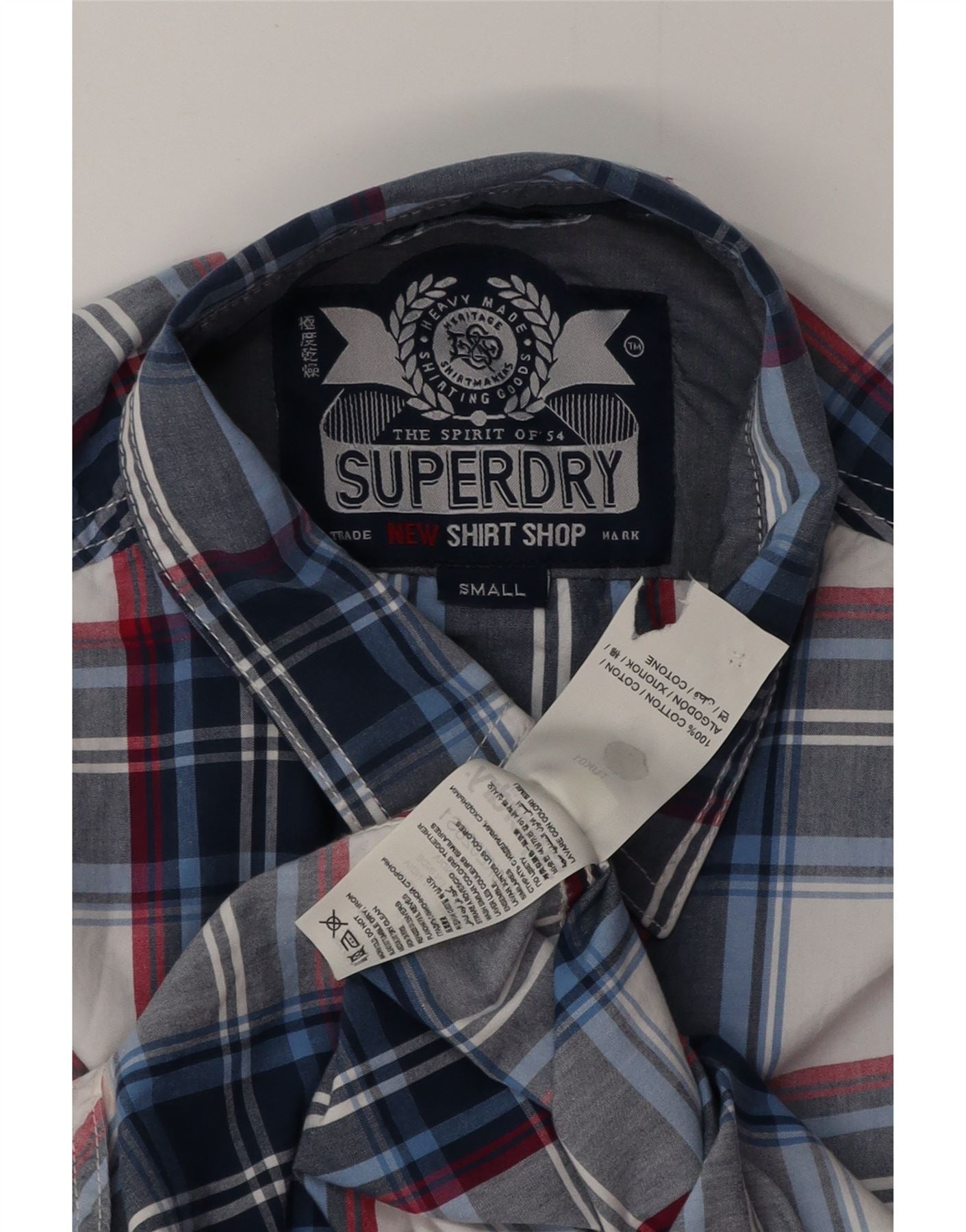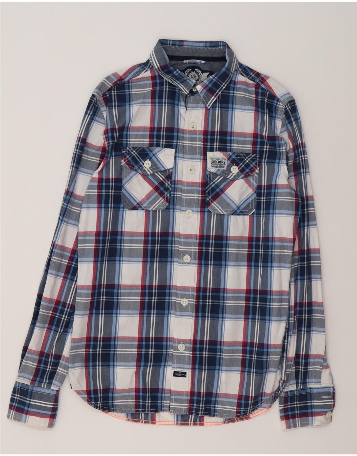 SUPERDRY Мужская рубашка, маленькая, темно-синяя, клетчатая, хлопковая