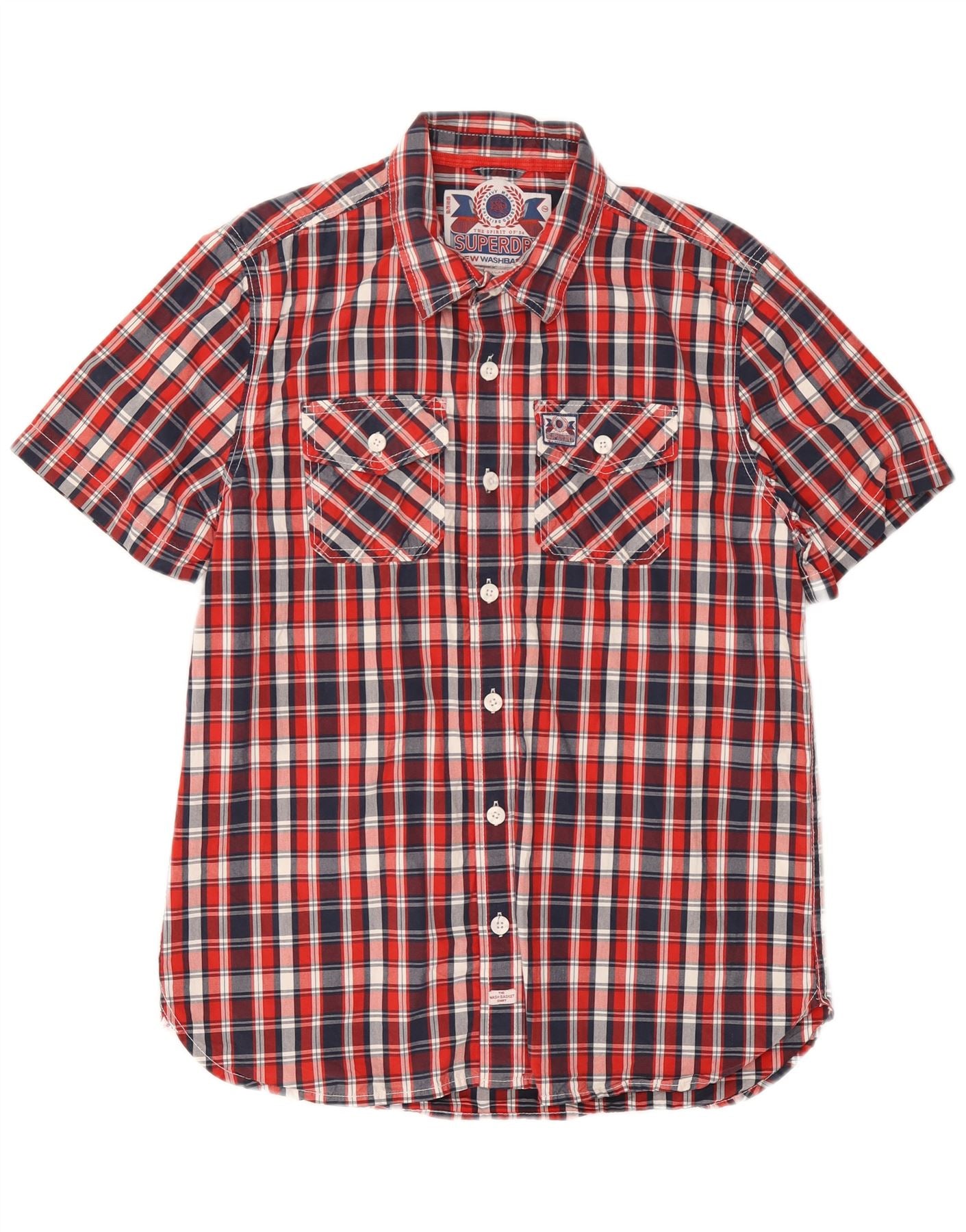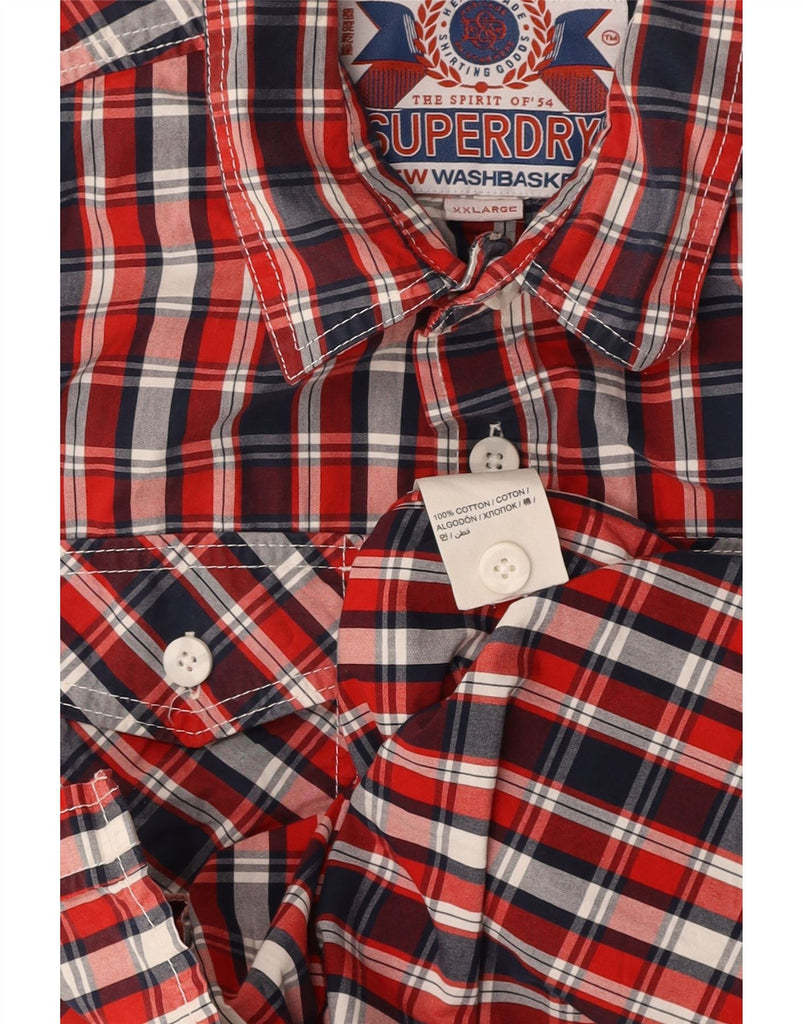 SUPERDRY Мужская рубашка с коротким рукавом 2XL бордовая клетка, хлопок