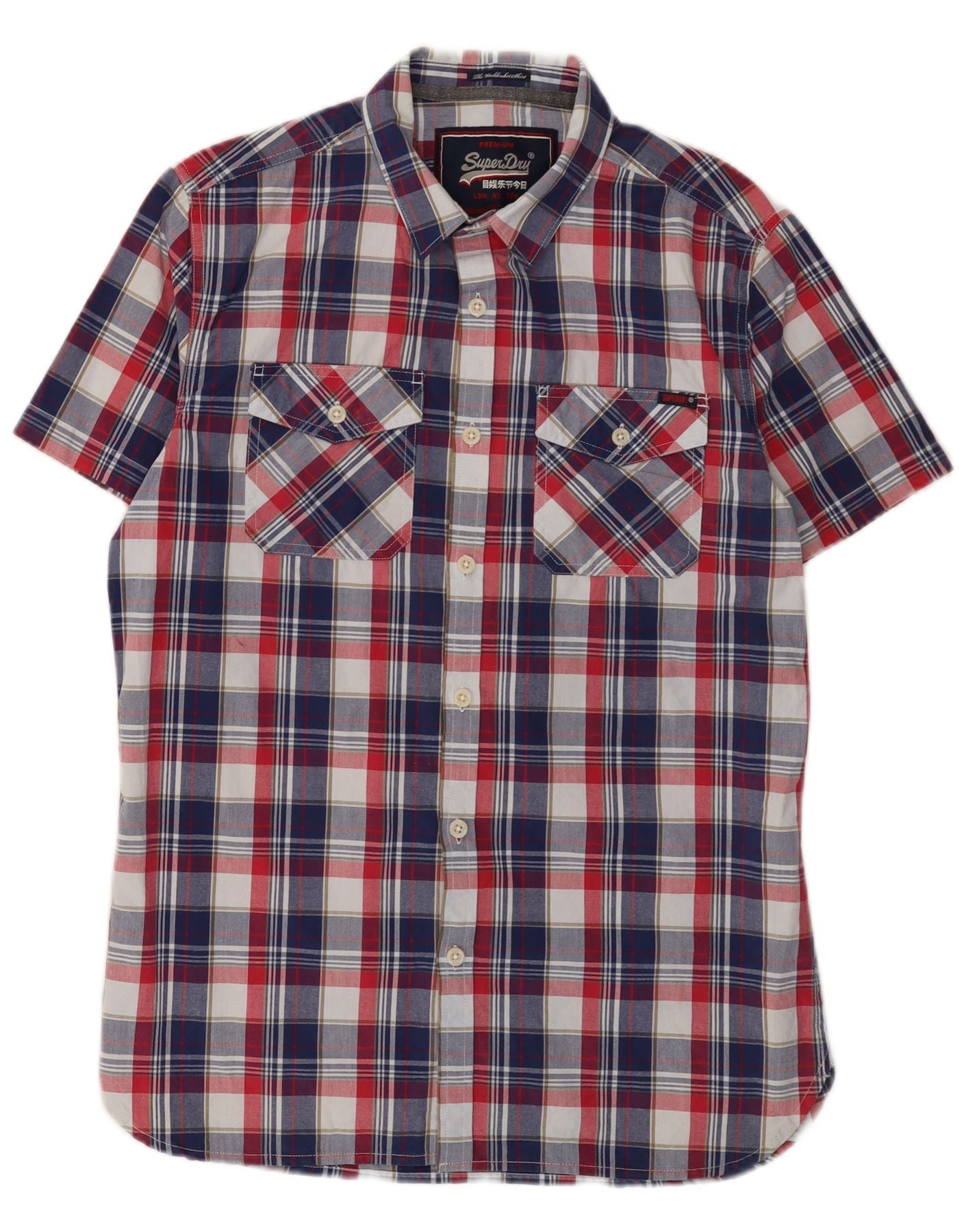SUPERDRY Мужская рубашка с коротким рукавом, большая разноцветная клетка, хлопок