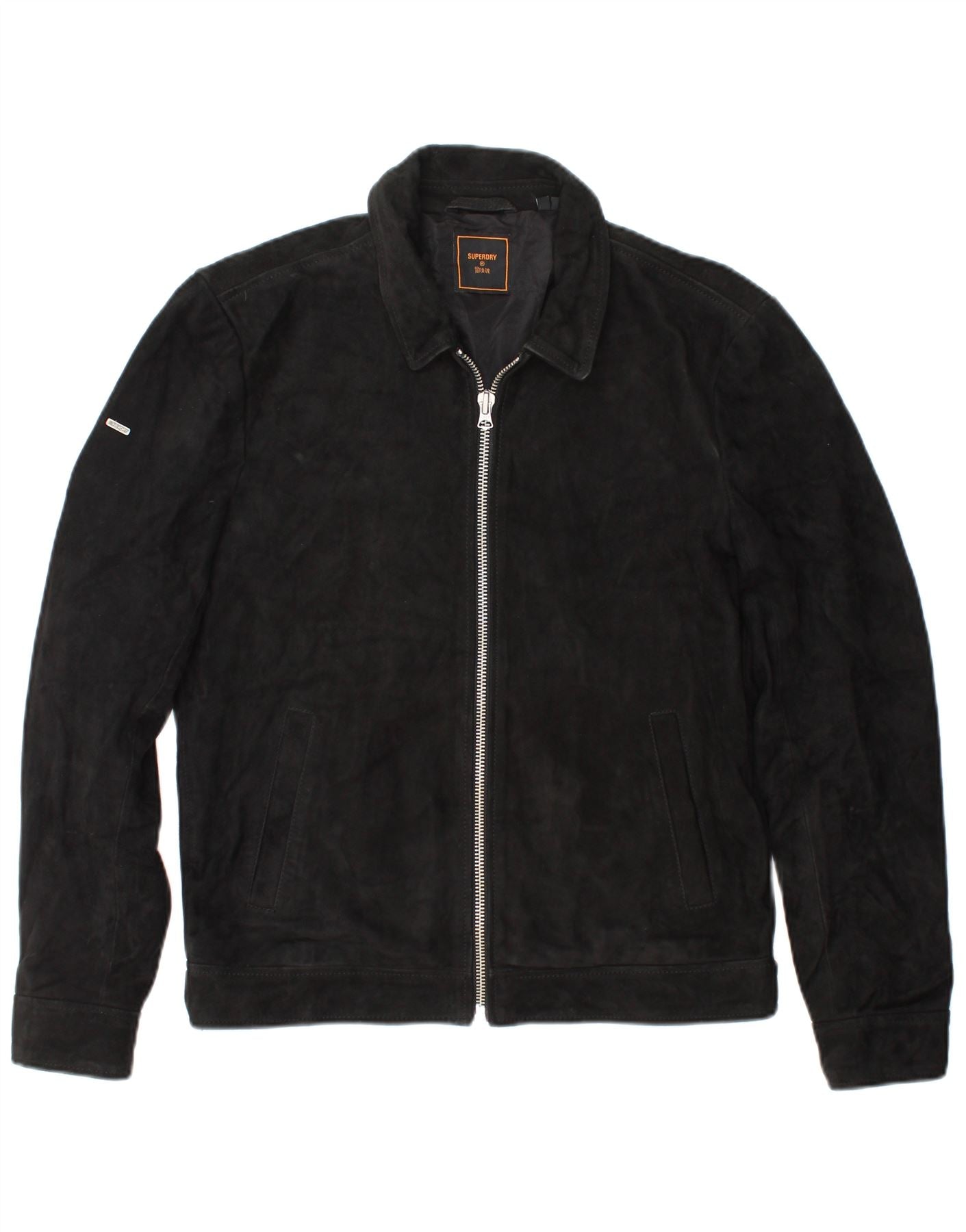 Мужская замшевая куртка SUPERDRY UK 36, маленькая, черная кожаная