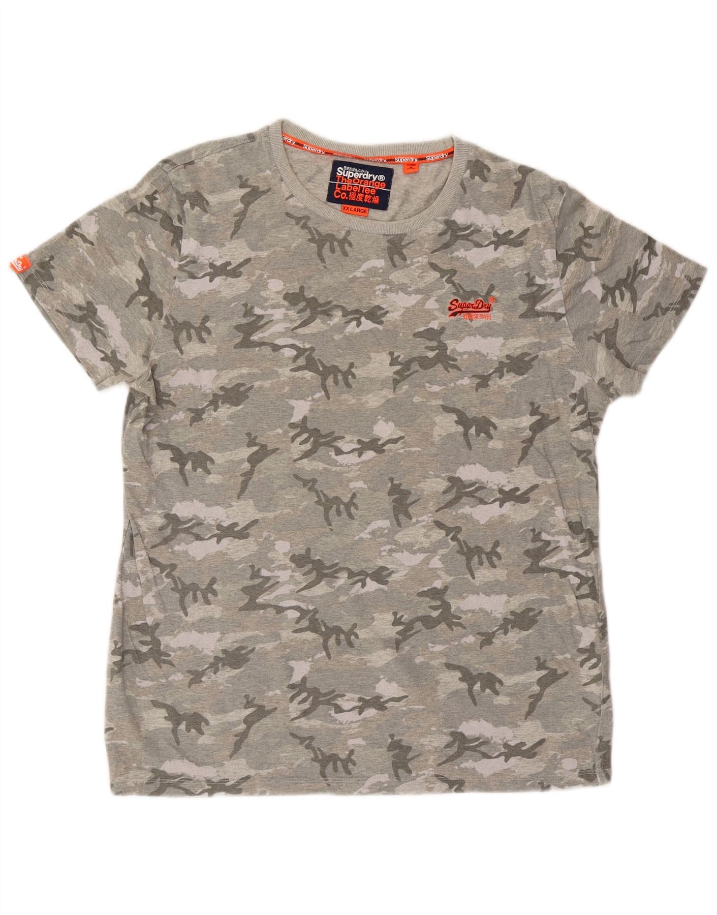 SUPERDRY Мужская футболка Top 2XL Серый камуфляжный хлопок