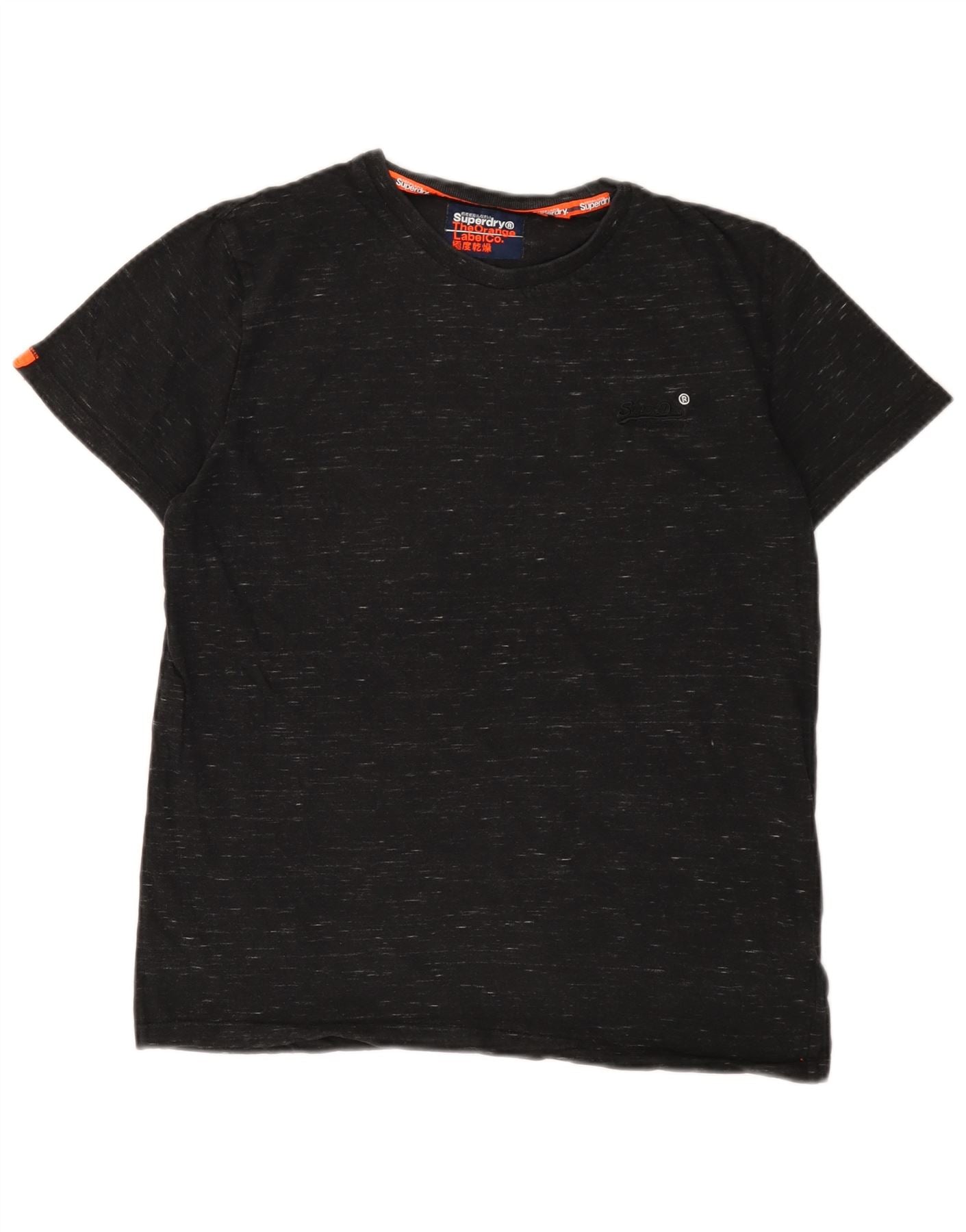 SUPERDRY Мужская футболка из хлопка среднего размера, черная в крапинку