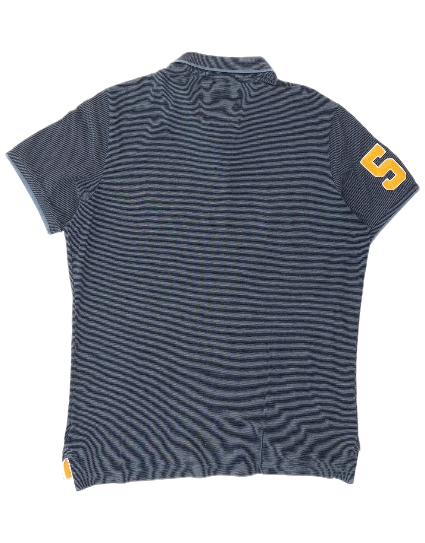 SUPERDRY Мужская классическая рубашка-поло с рисунком 3XL, темно-синяя в тонкую полоску