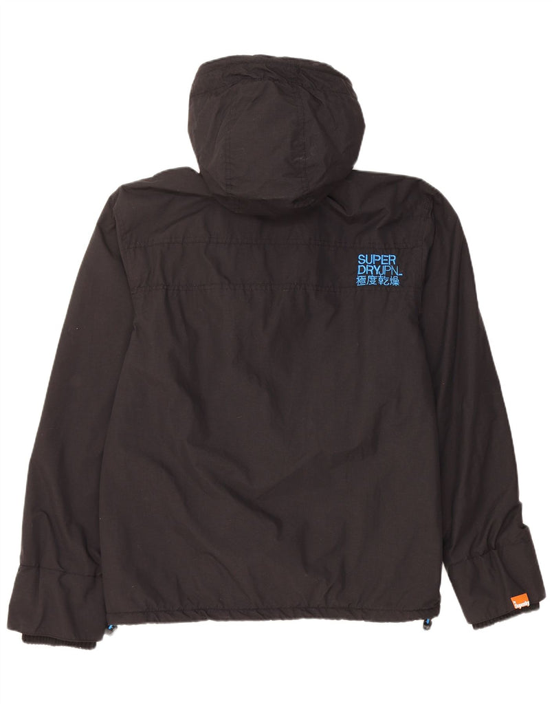 SUPERDRY Mens Windcheater Hooded Windbreaker Jacket UK 42 XL Black Nylon