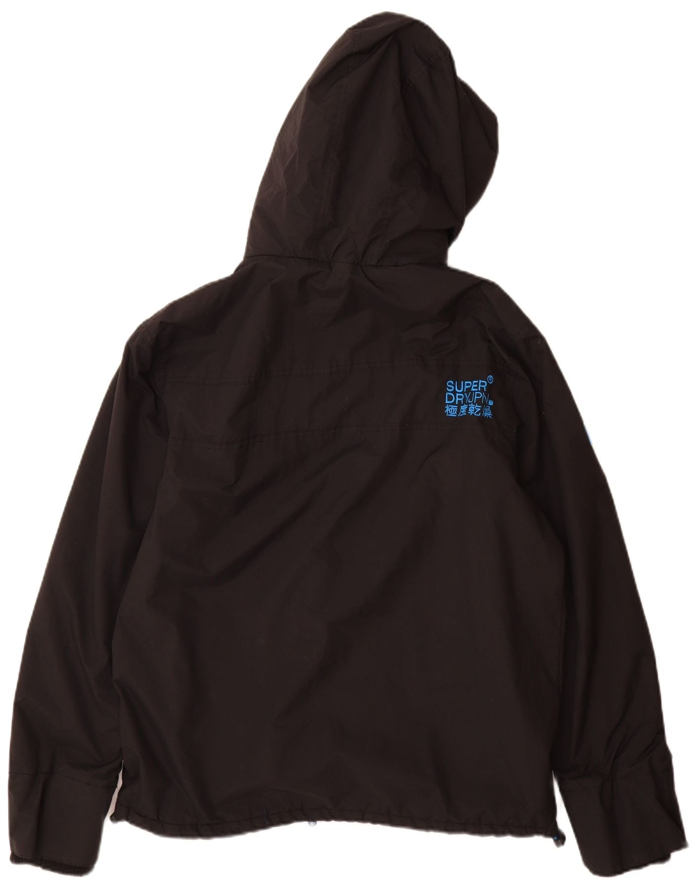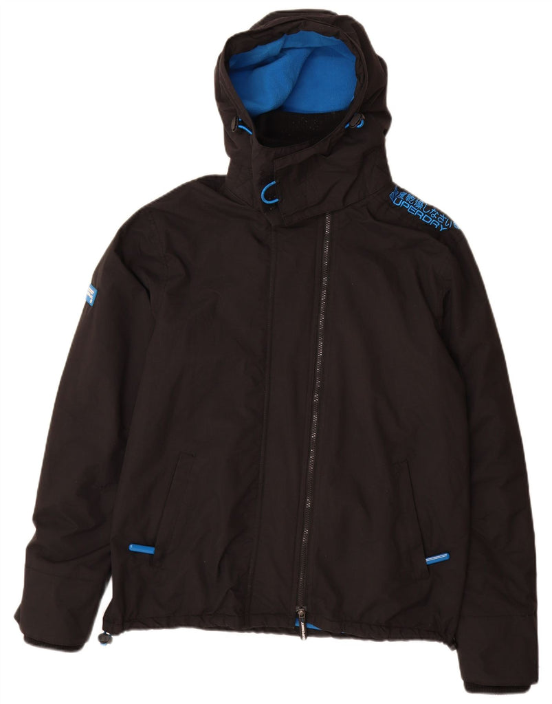 SUPERDRY Mens Windcheater Hooded Windbreaker Jacket UK 42 XL Black Nylon