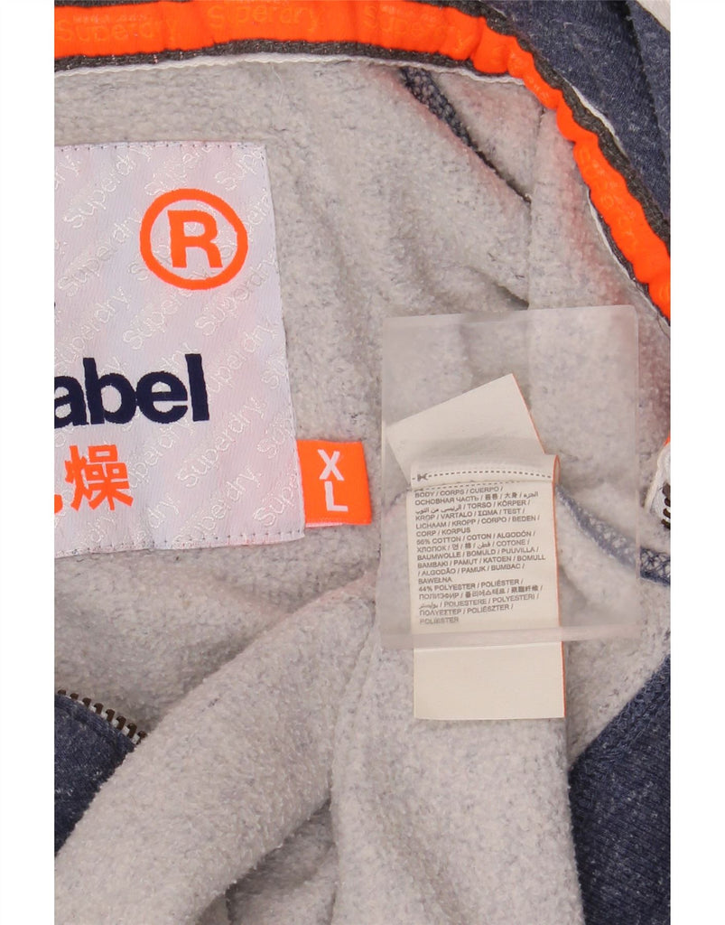 SUPERDRY Mens Zip Hoodie Sweater XL Blue Flecked Cotton