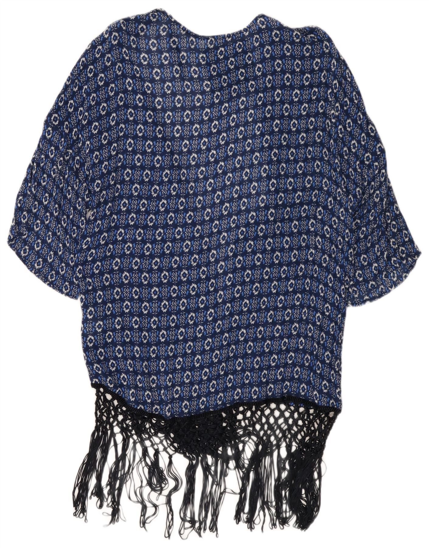 SUPERDRY Женский удлиненный кардиган с рукавом 3/4, Великобритания 14, средний синий с узором пейсли