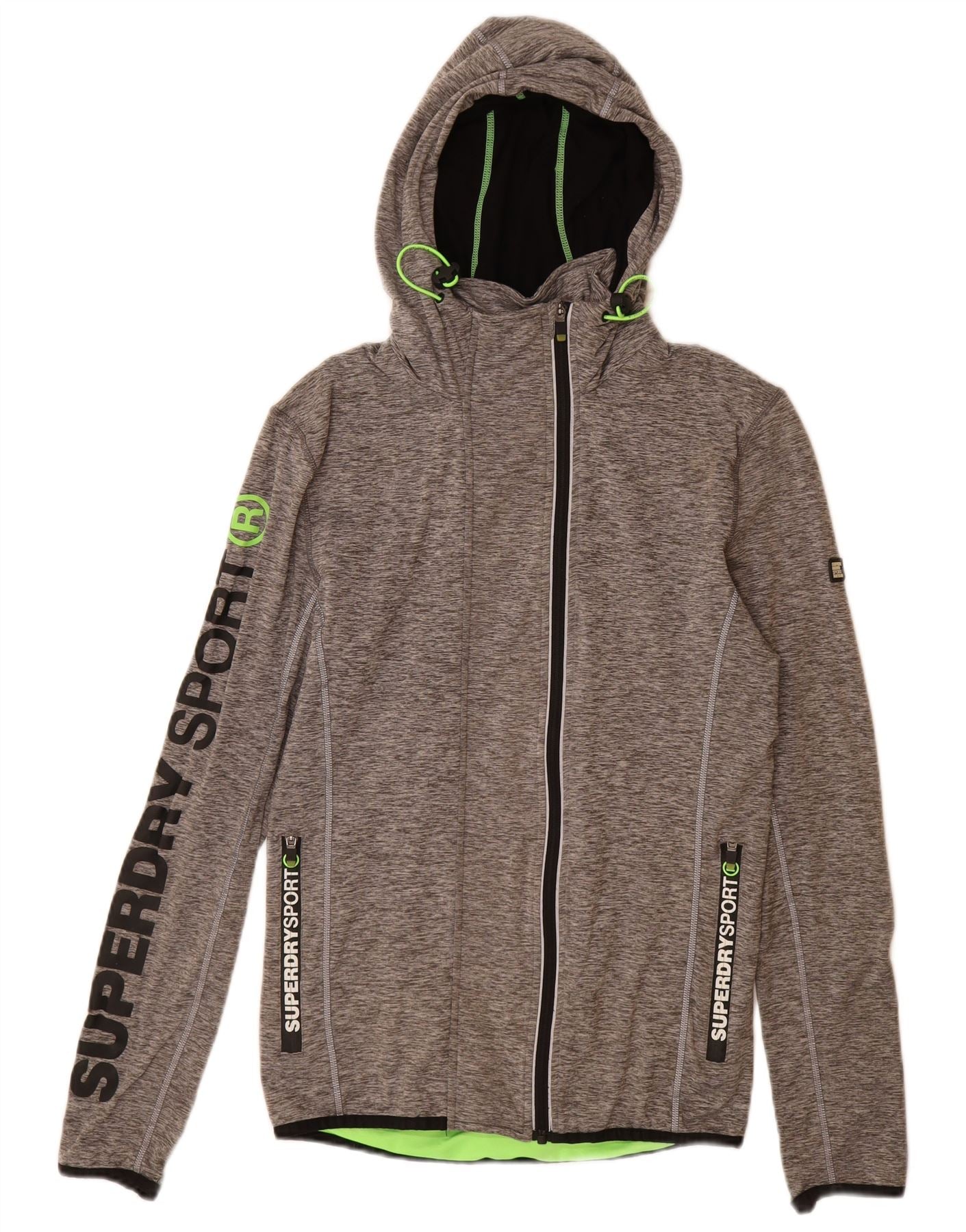 SUPERDRY Женский свитер с капюшоном и молнией спортивного кроя UK 12, средний серый цвет