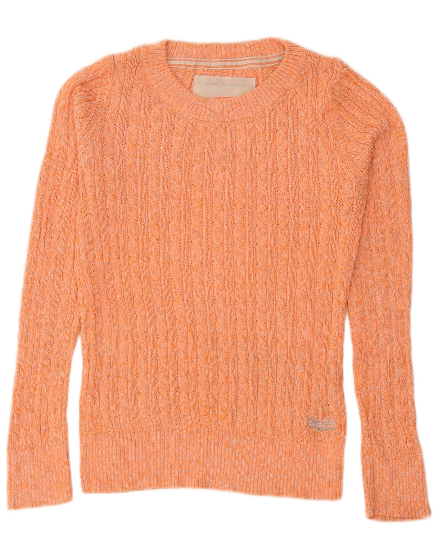 Женский джемпер с круглым вырезом Superdry UK 14, большой хлопок с оранжевыми крапинками