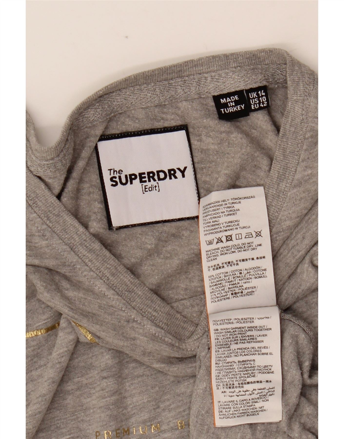 SUPERDRY Женская футболка с рисунком Top UK 14, большой серый хлопок