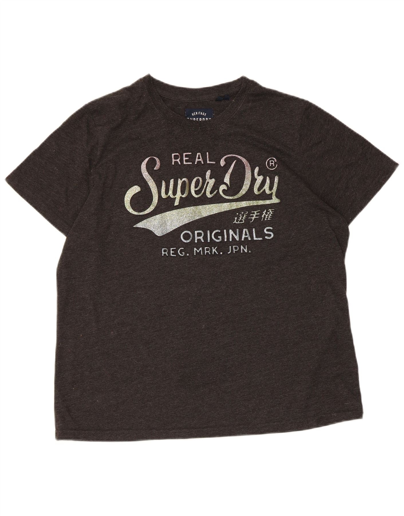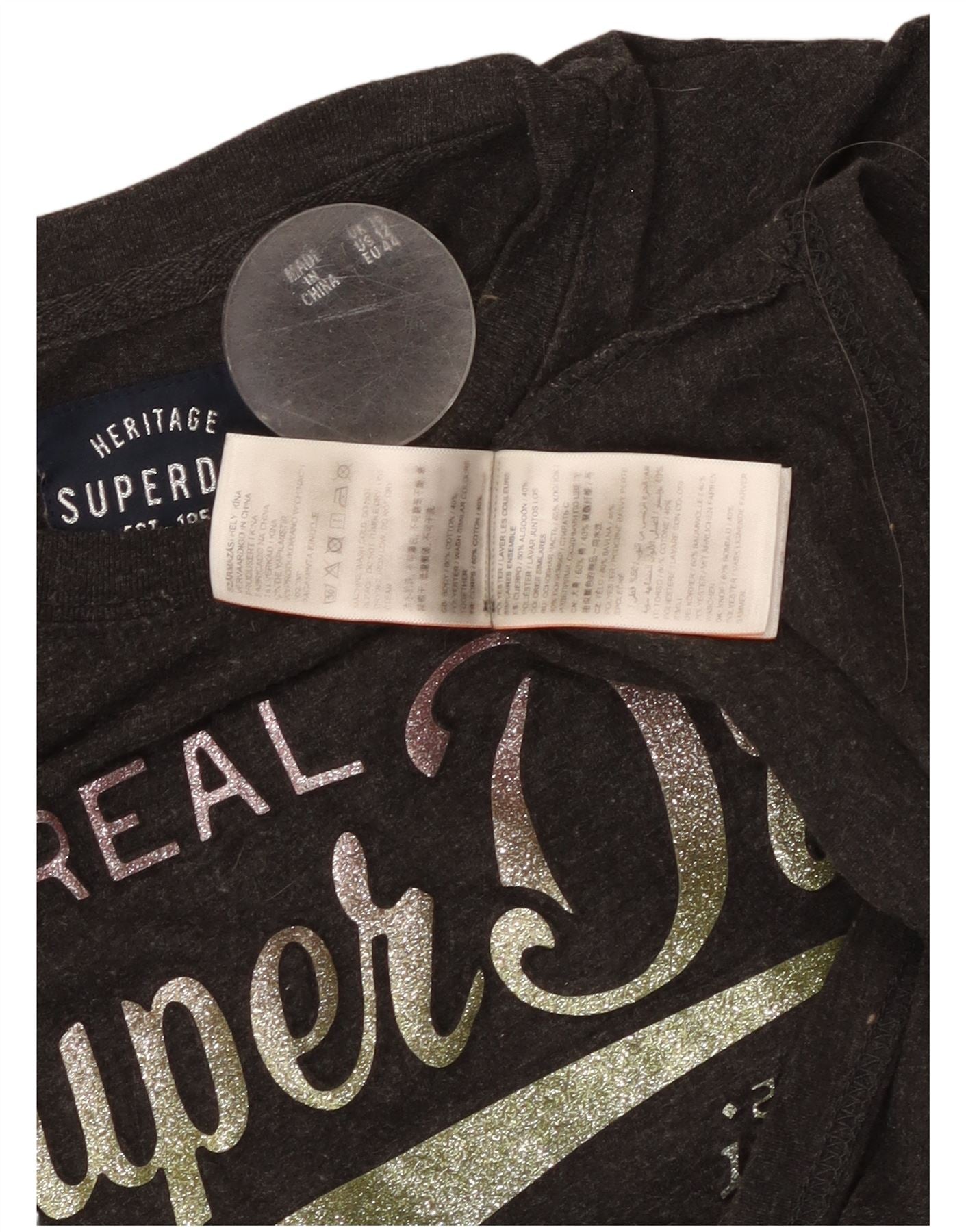 SUPERDRY Женская футболка с рисунком Top UK 16, большой серый хлопок с крапинками