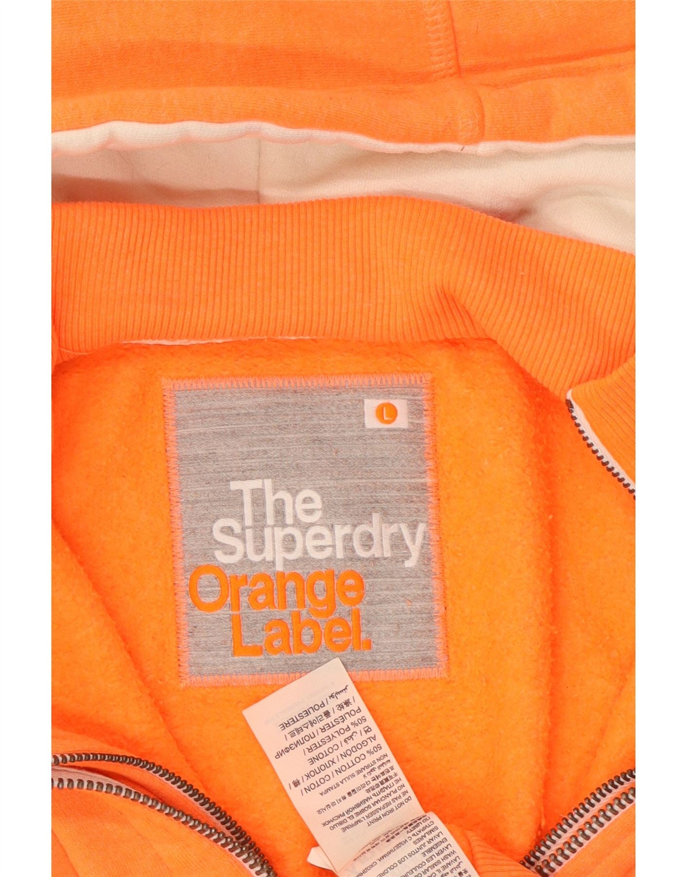 SUPERDRY Womens Graphic Zip Hoodie Sweater UK 16 Large Orange Cotton