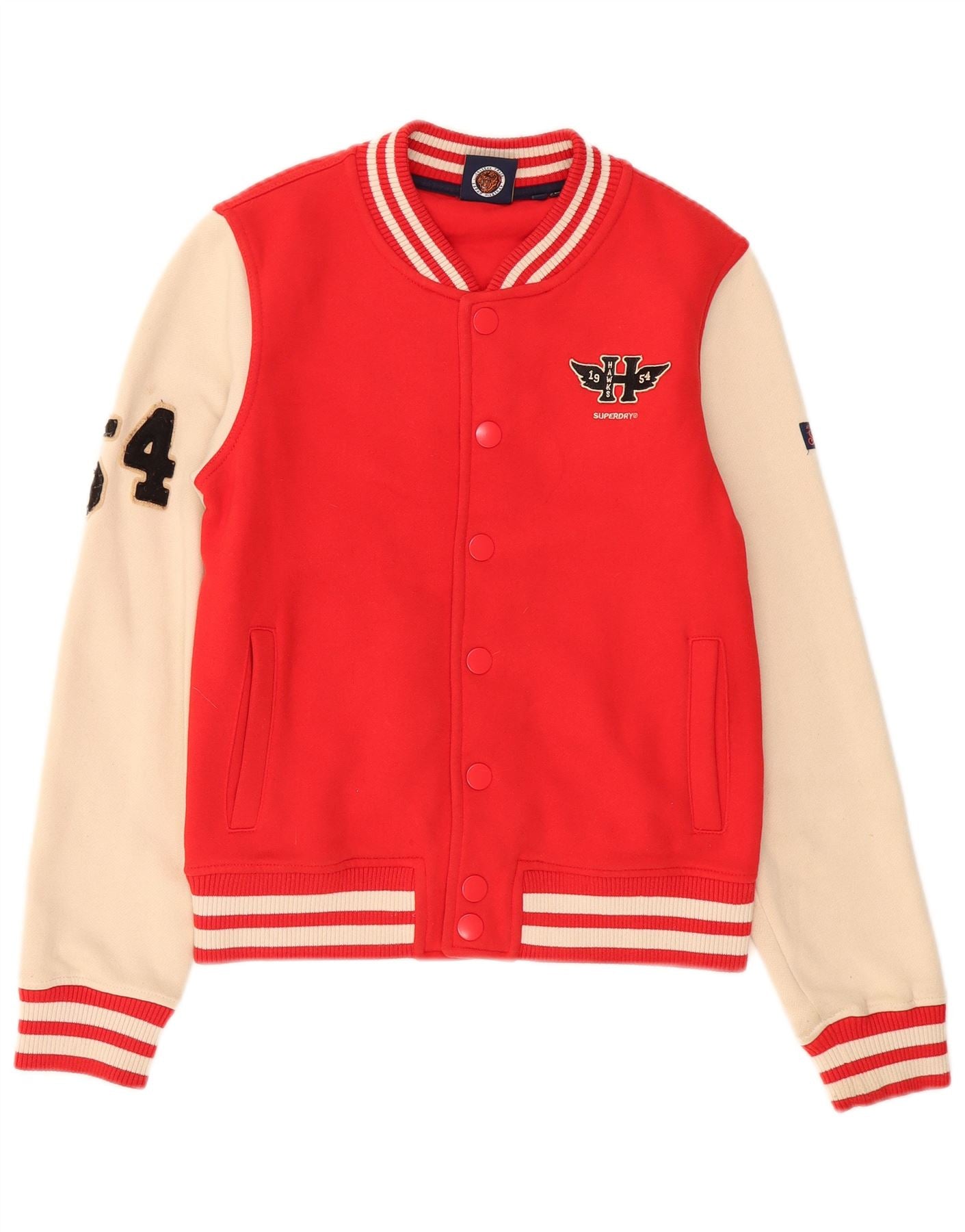 SUPERDRY Womens Hawks Graphic Varsity Jacket UK 10 Small Red Colourblock