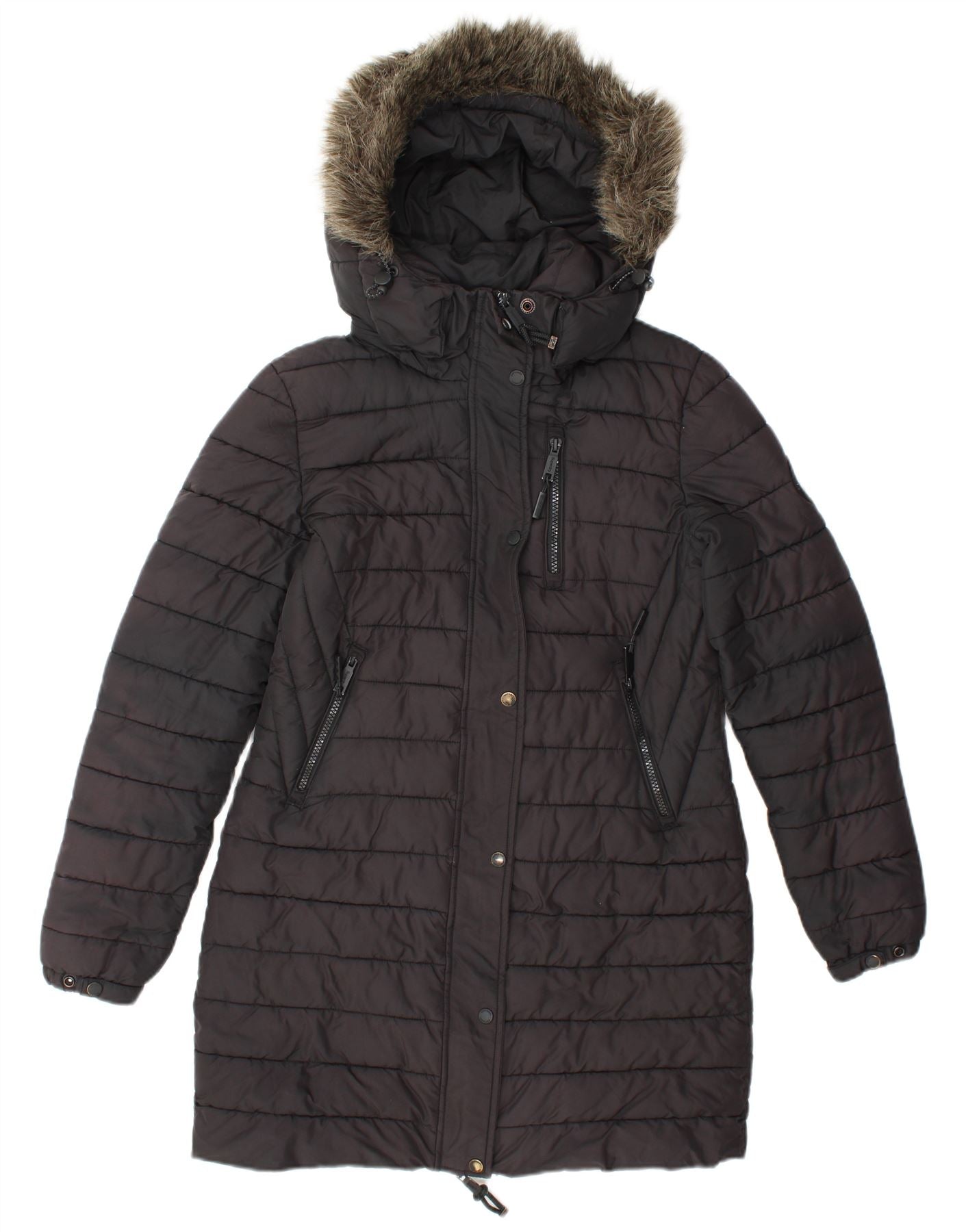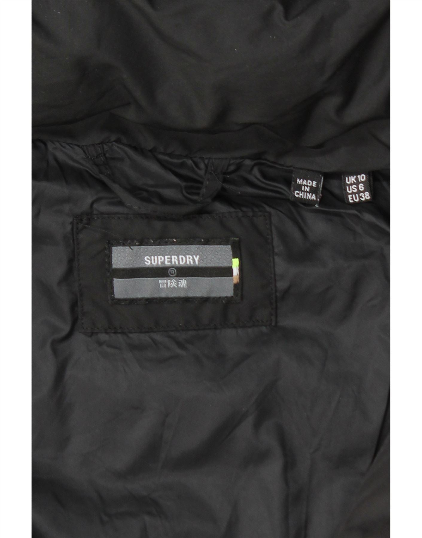 SUPERDRY Женское стеганое пальто с капюшоном UK 10, маленький черный полиэстер