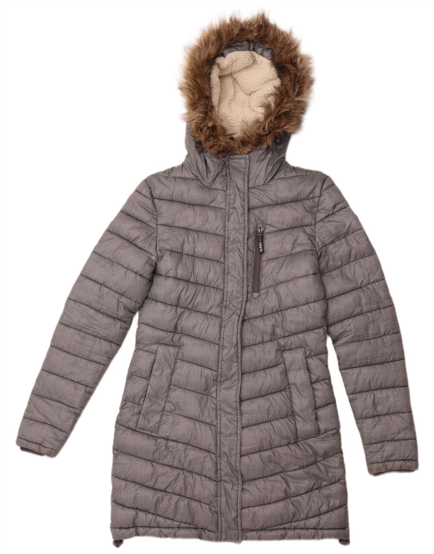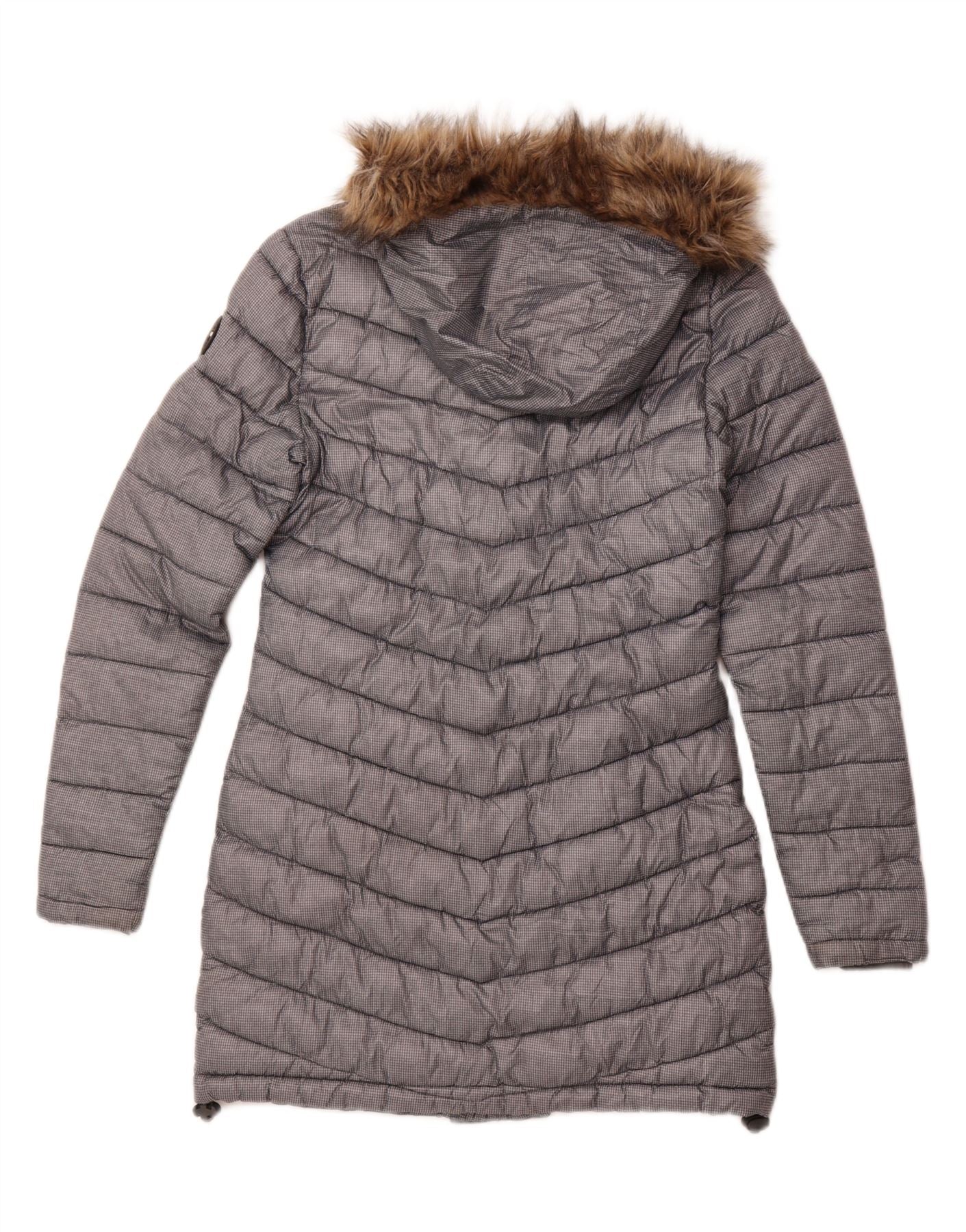 SUPERDRY Womens Hooded Padded Coat UK 10 Small Grey Polyester