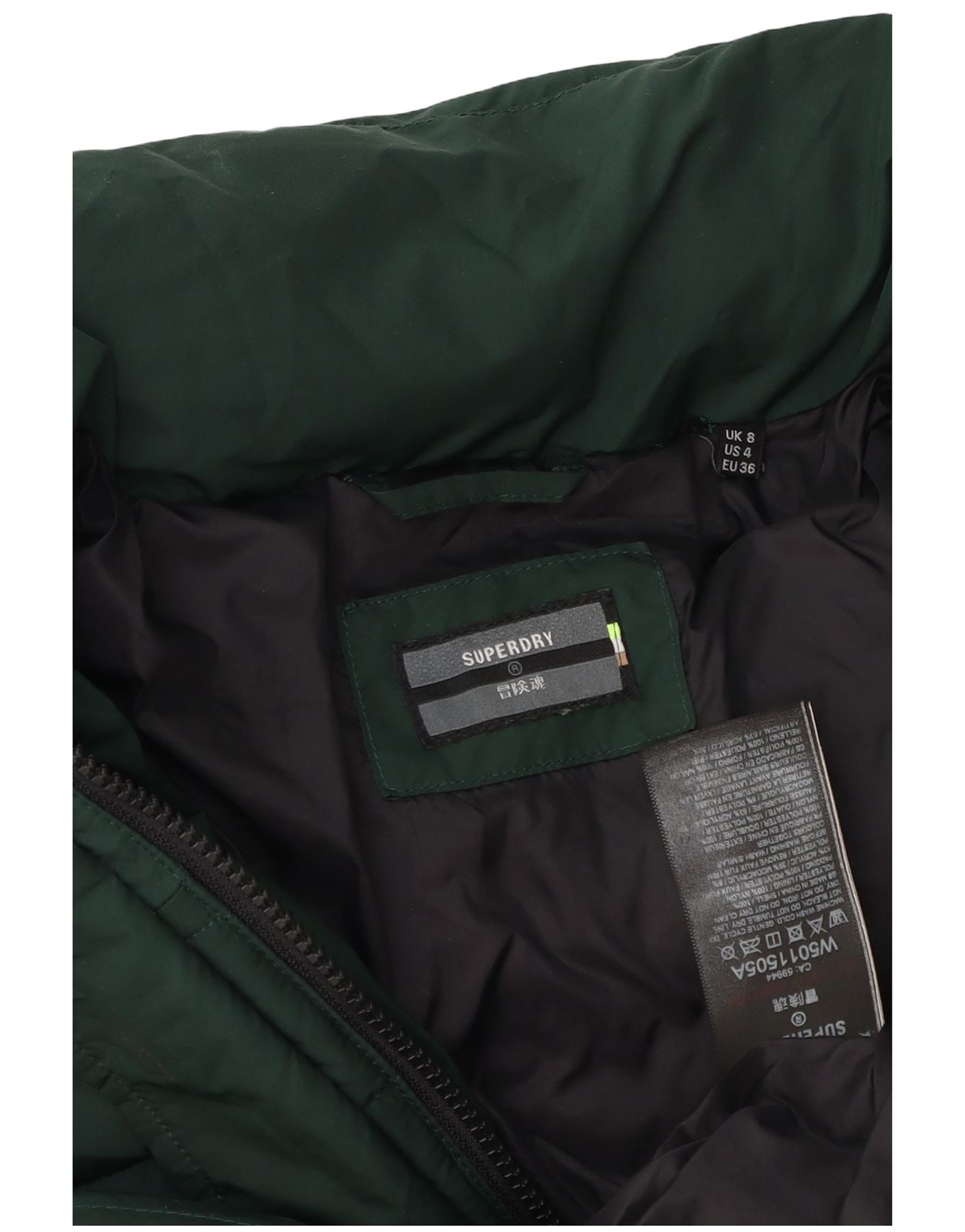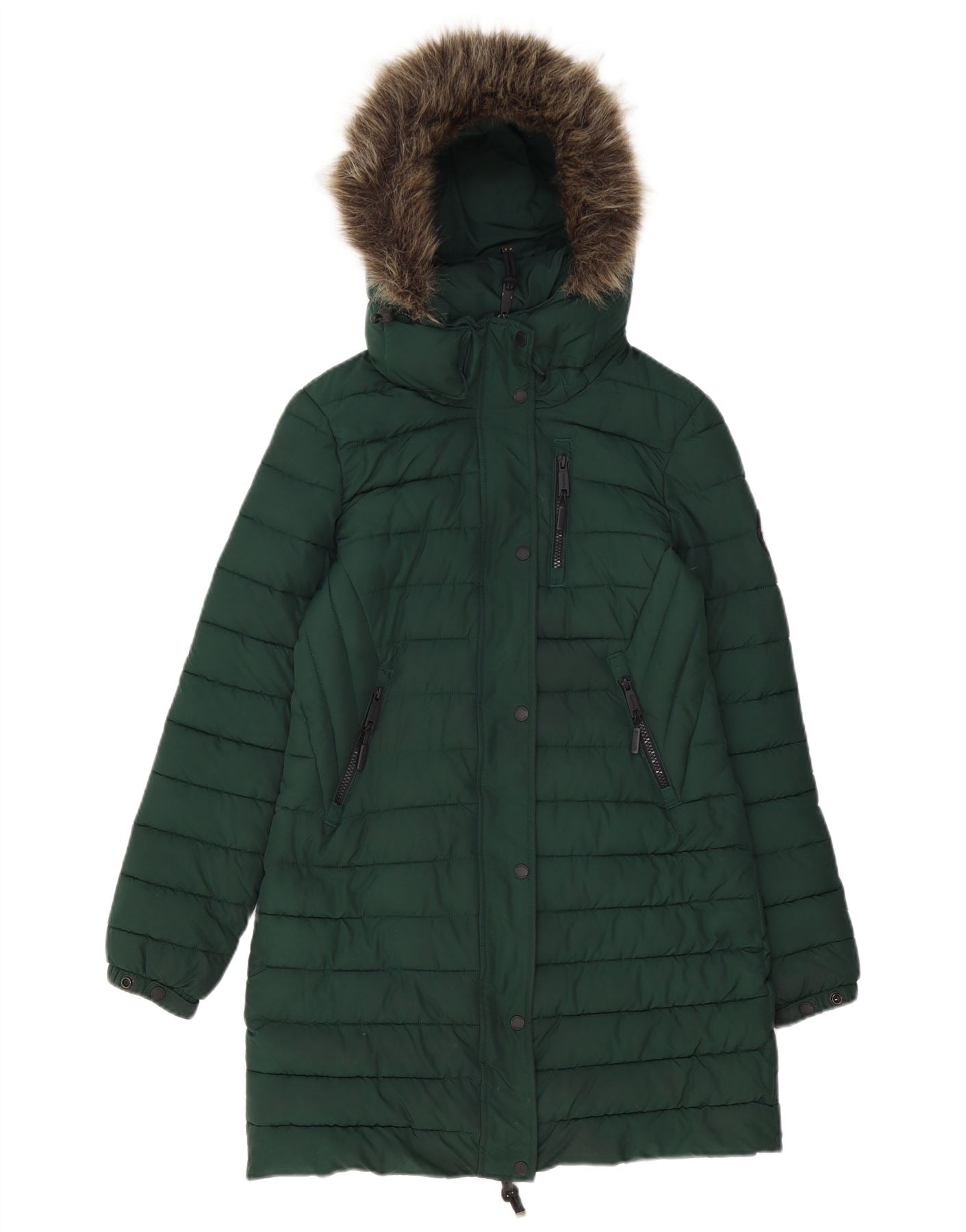 SUPERDRY Womens Hooded Padded Coat UK 8 Small Green Polyester