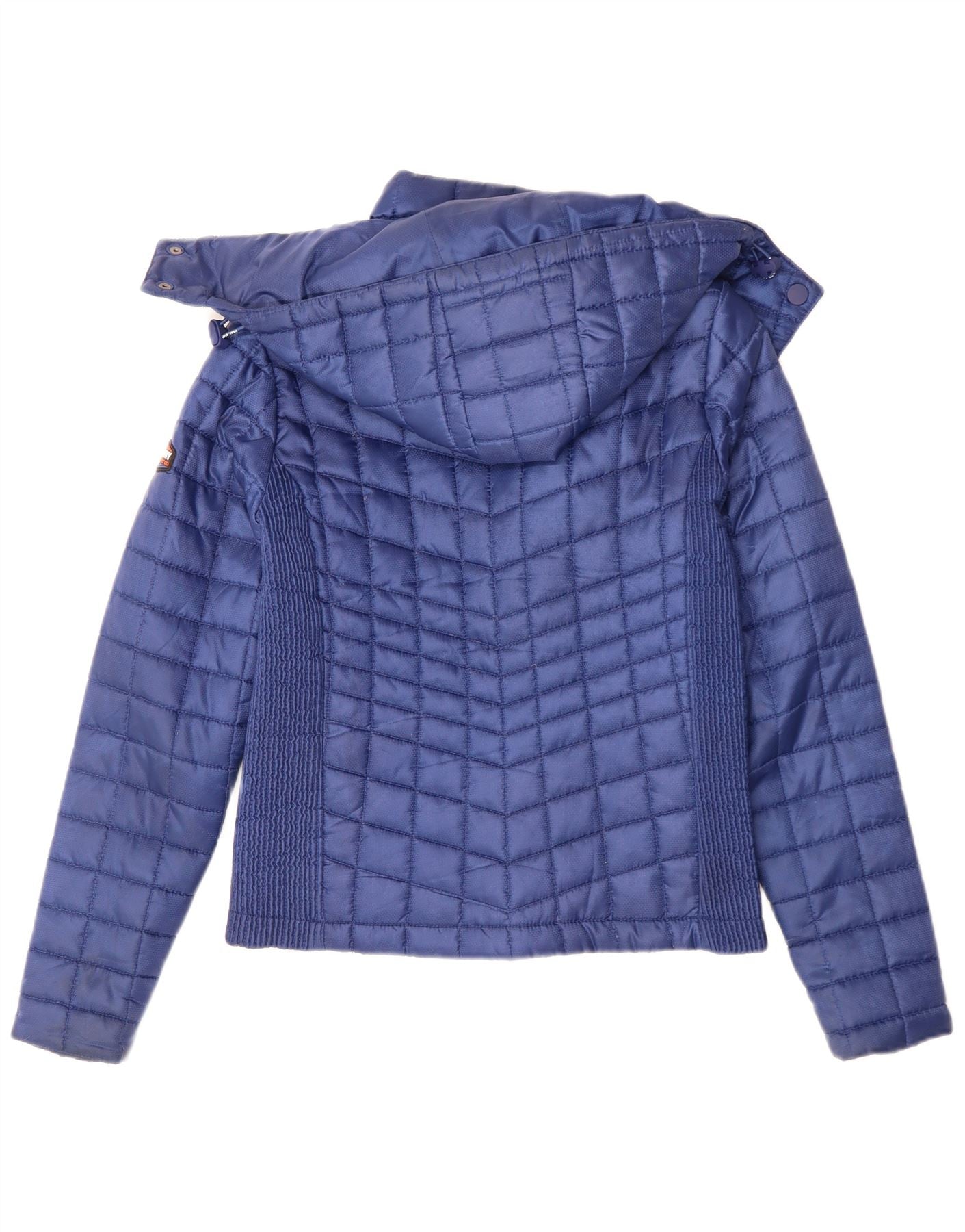 SUPERDRY Женская стеганая куртка с капюшоном UK 12 Средний Темно-Синий Полиэстер