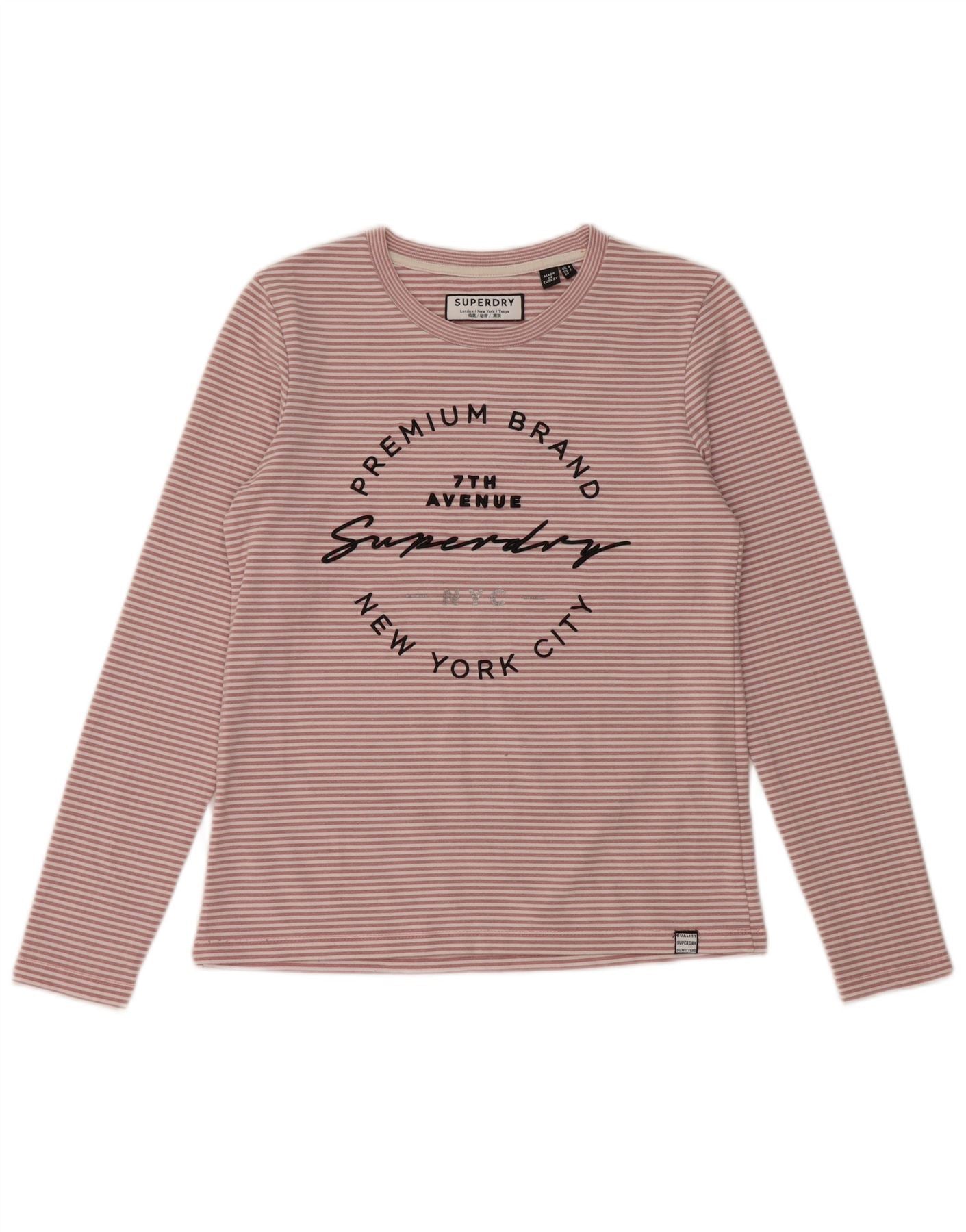 SUPERDRY Женский топ с длинным рукавом New York City, Великобритания, 8, маленький розовый