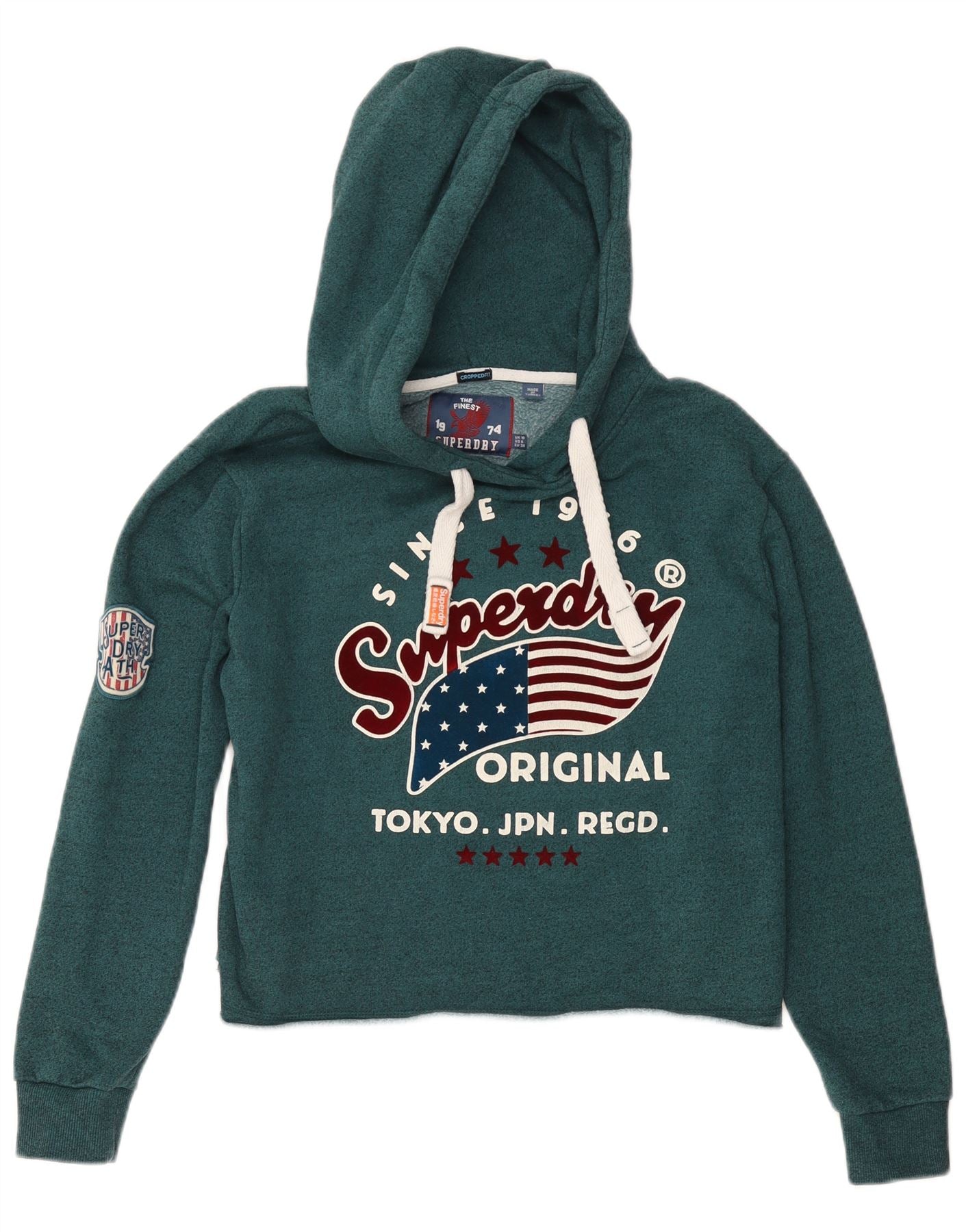 Home > Женский > Депоп Одежда > SUPERDRY Женский укороченный джемпер с капюшоном и рисунком, UK 10, маленький зеленый