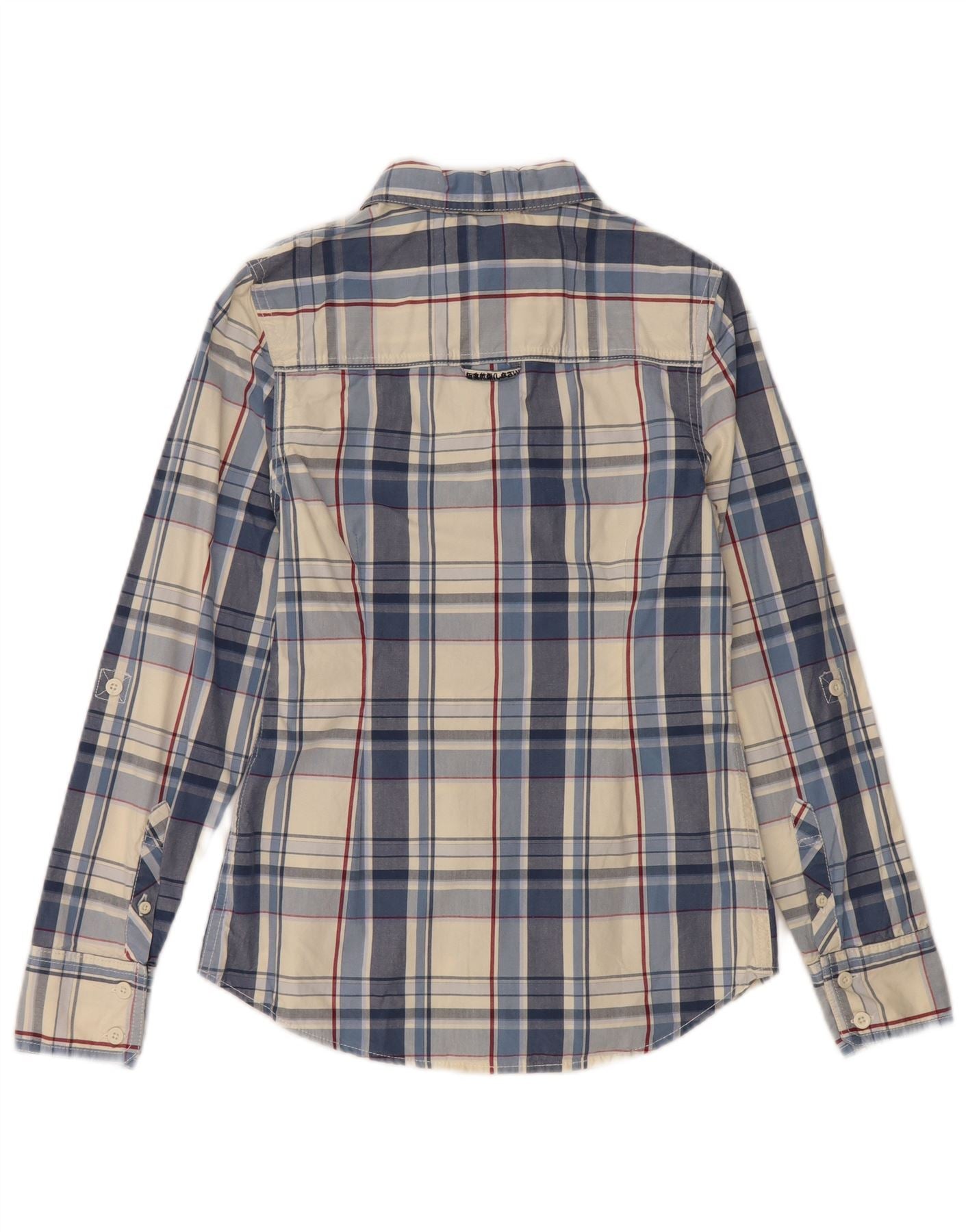SUPERDRY Женская рубашка UK 10, маленькая синяя клетка, хлопок