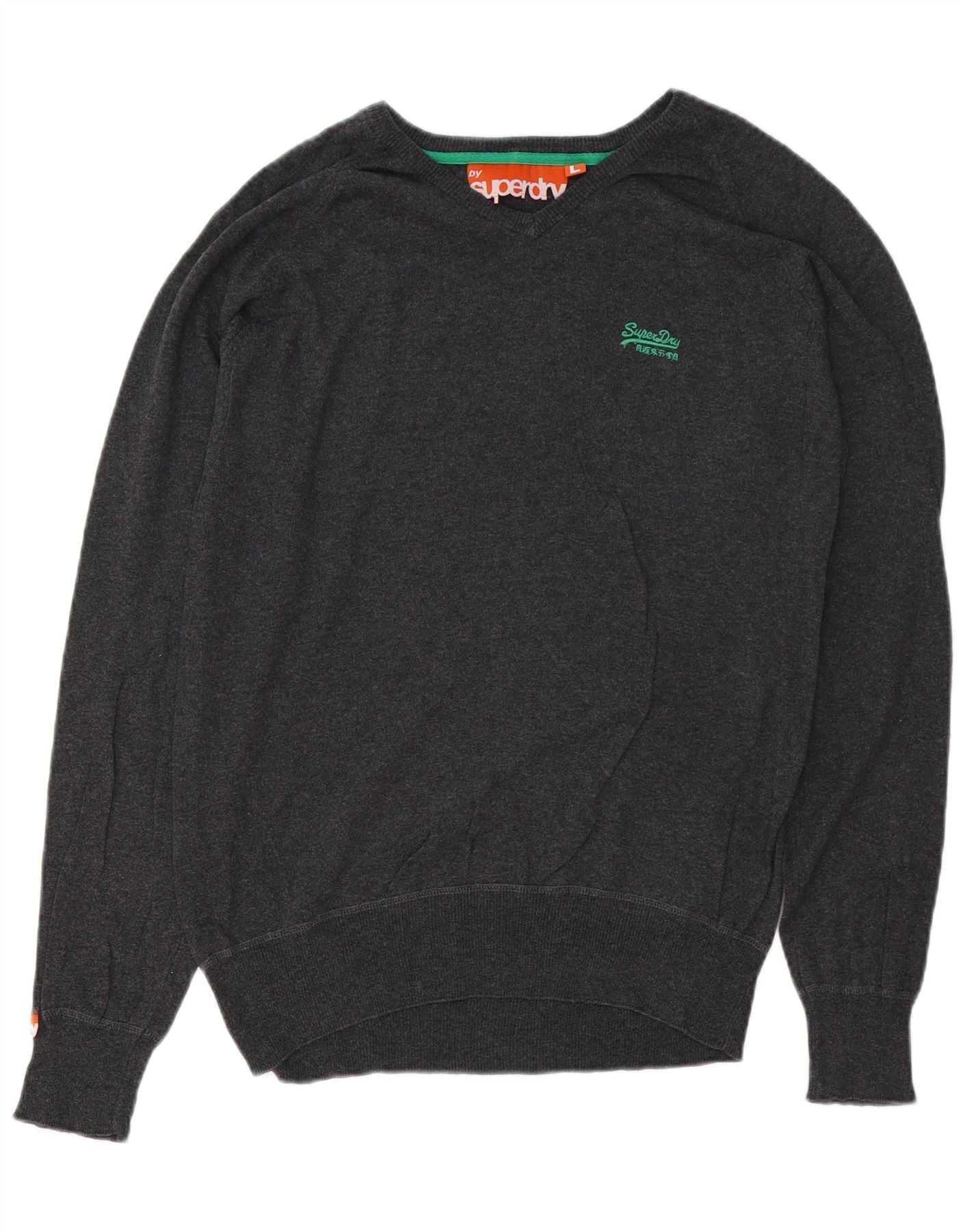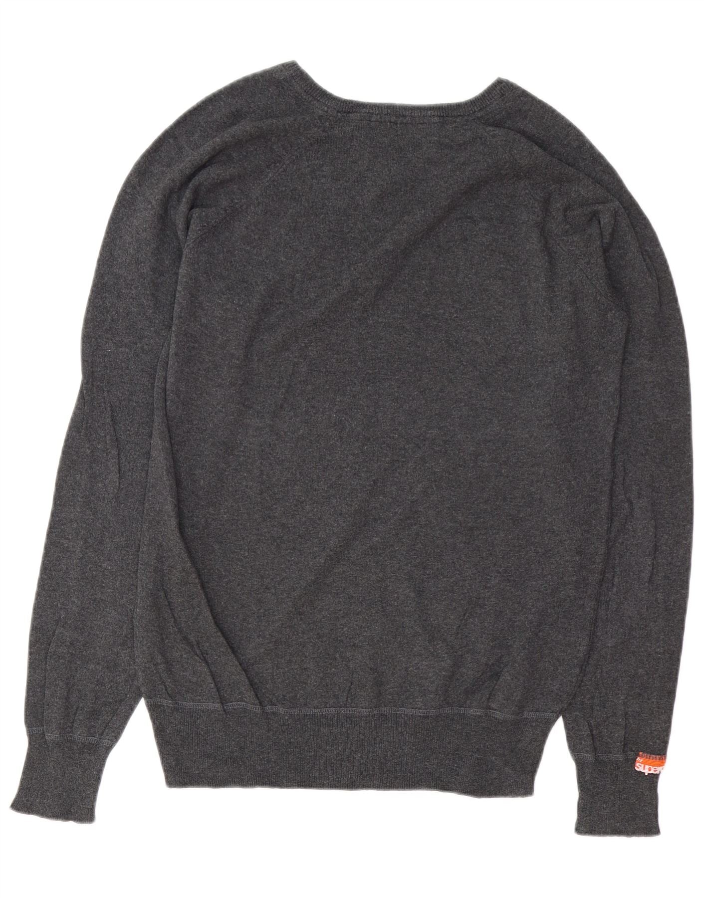 SUPERDRY Женский джемпер с v-образным вырезом UK 16, большой серый хлопок