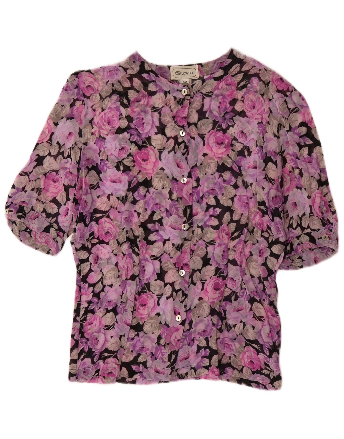 SUPERIOR Womens Short Sleeve Shirt Blouse IT 42 Medium Lilac Floral