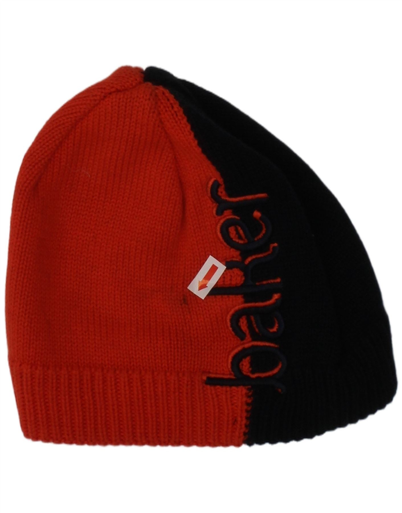 TED BAKER Boys Graphic Knit Beanie Hat 7-8 Years Red Colourblock Classic