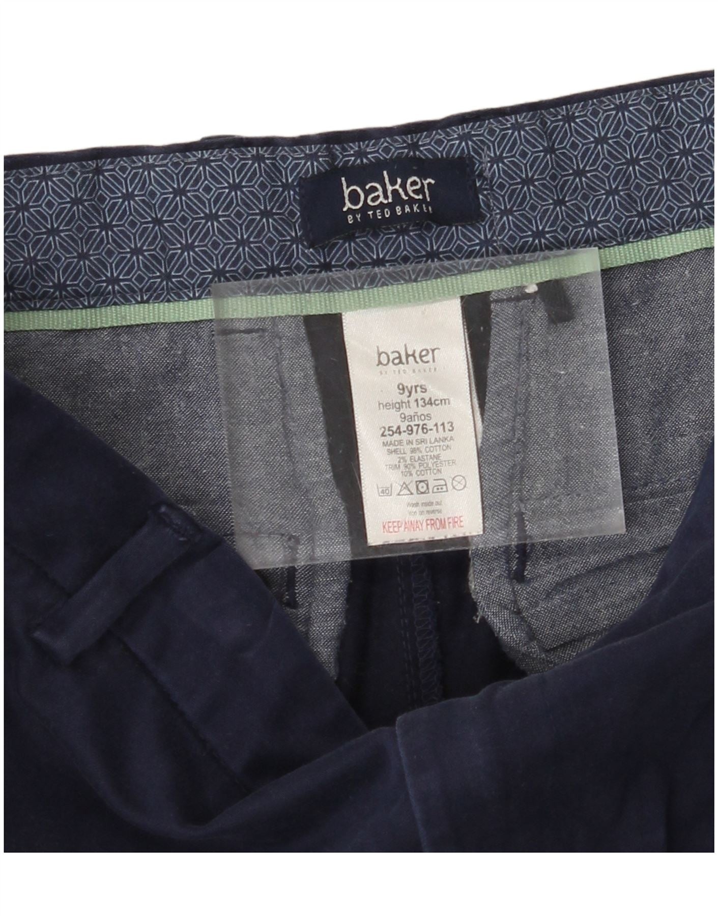 TED BAKER Boys Slim Chino Trousers 8-9 Years W24 L21 Navy Blue Cotton