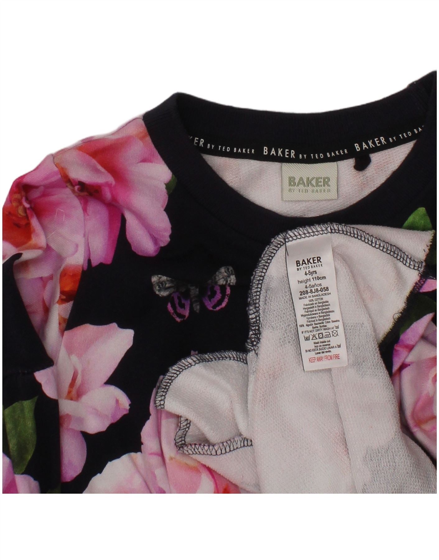 Платье трапециевидного силуэта с рисунком для девочек TED BAKER, 4–5 лет, темно-синее с цветочным принтом
