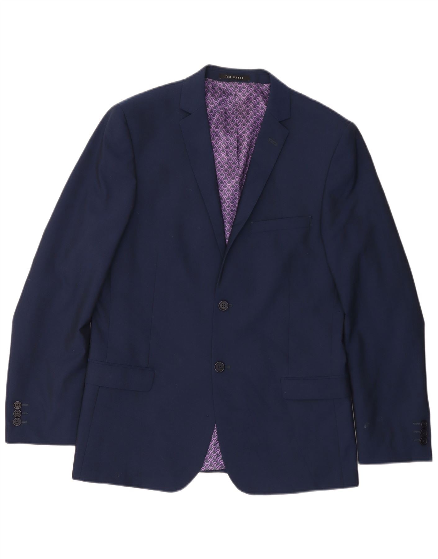 Мужской пиджак с 2 пуговицами Ted Baker UK 40, большой темно-синий, шерстяной