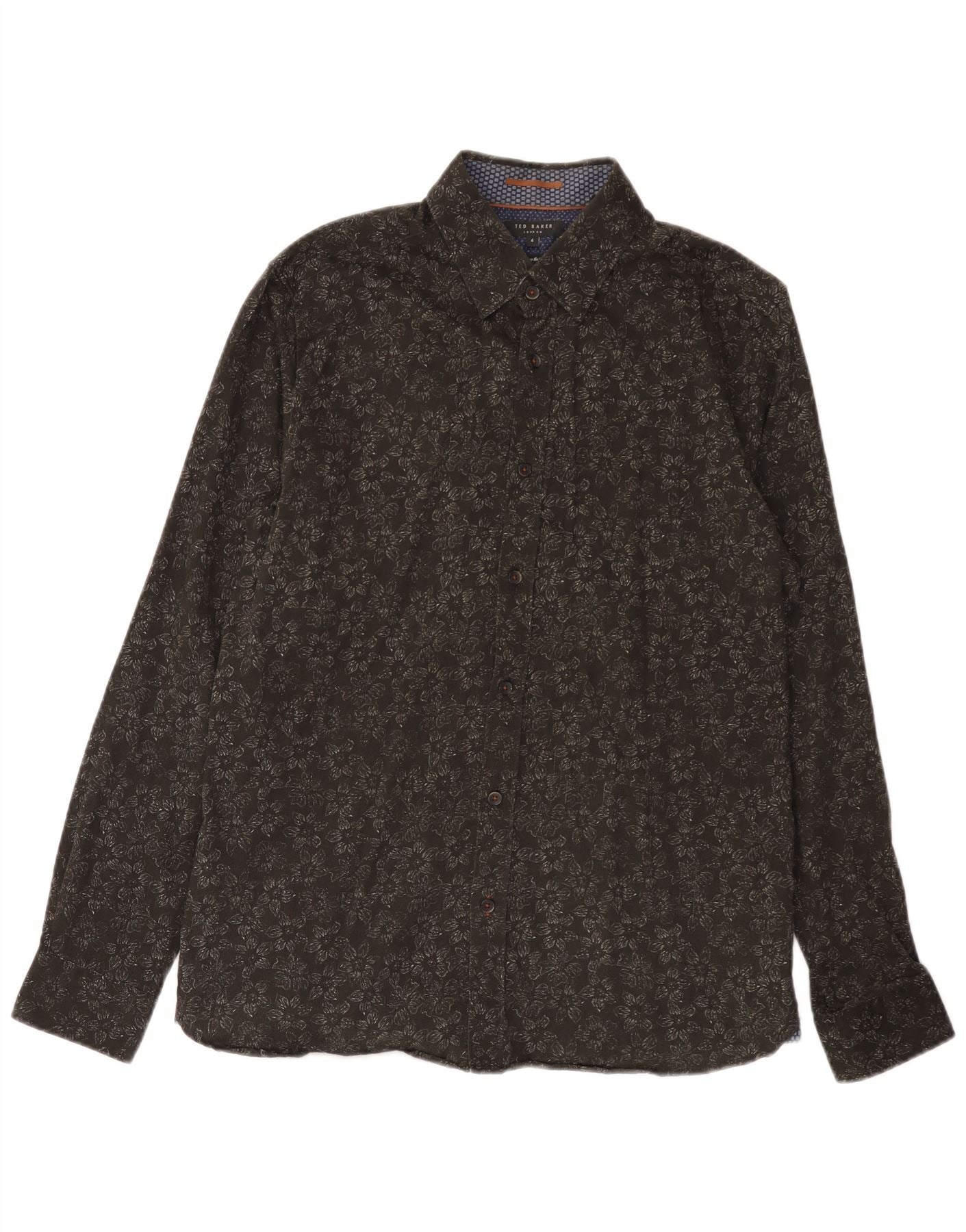 Мужская рубашка TED BAKER, размер 4, большая черная хлопковая рубашка с цветочным принтом