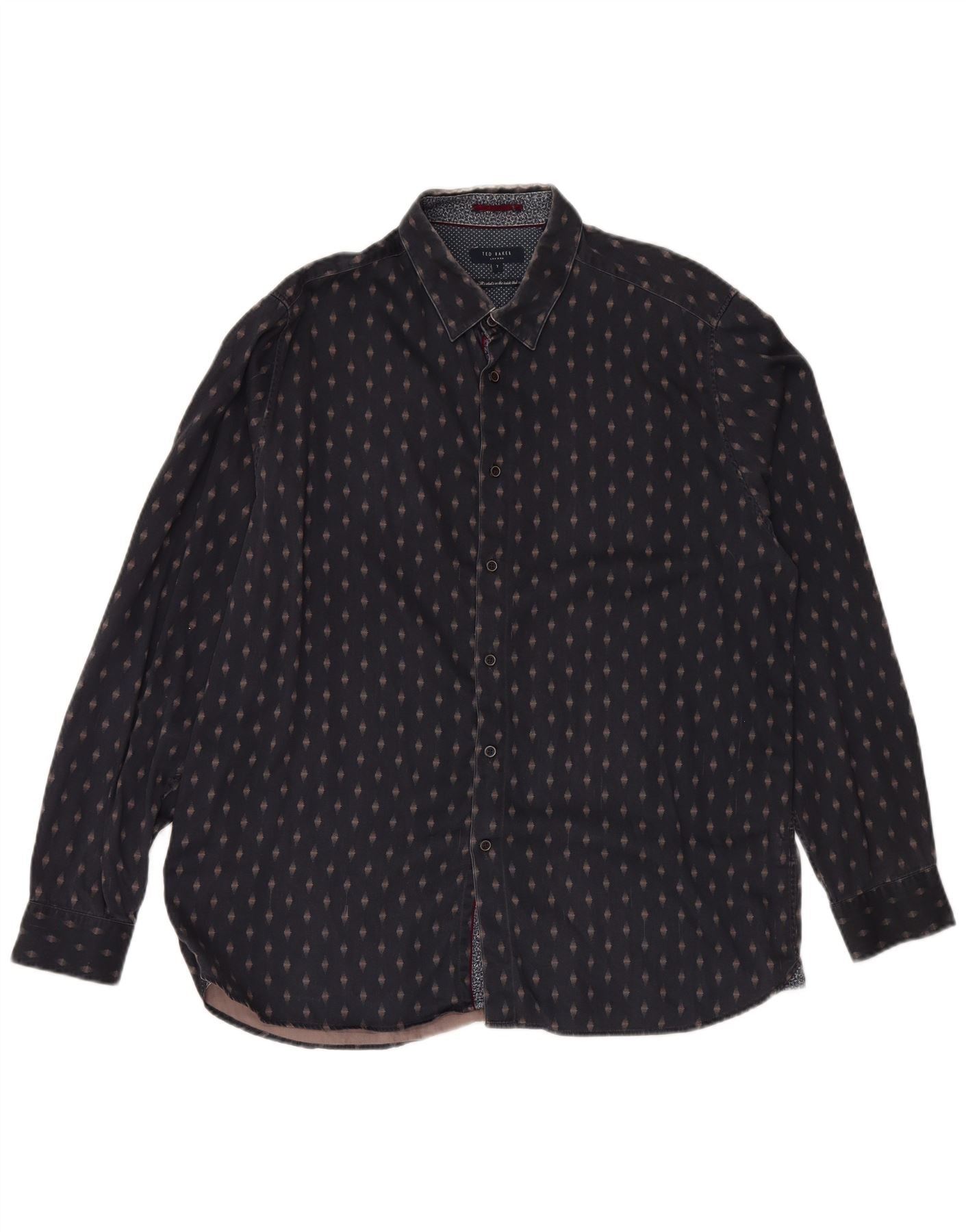 Мужская рубашка TED BAKER, размер 7, 3XL, темно-синяя, хлопок с геометрическим рисунком
