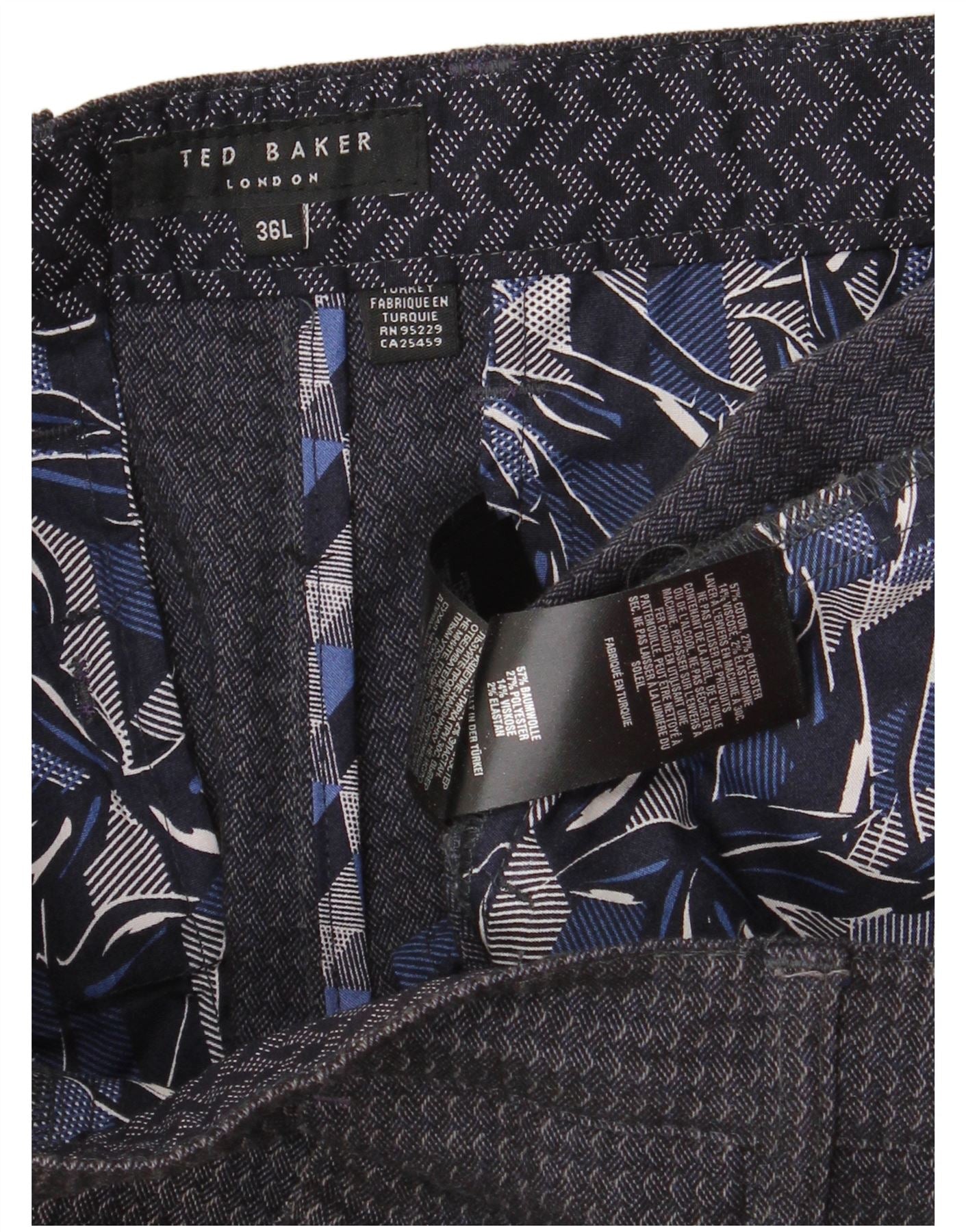 Мужские узкие костюмные брюки TED BAKER W36 L33, темно-синие, хлопок с геометрическим рисунком